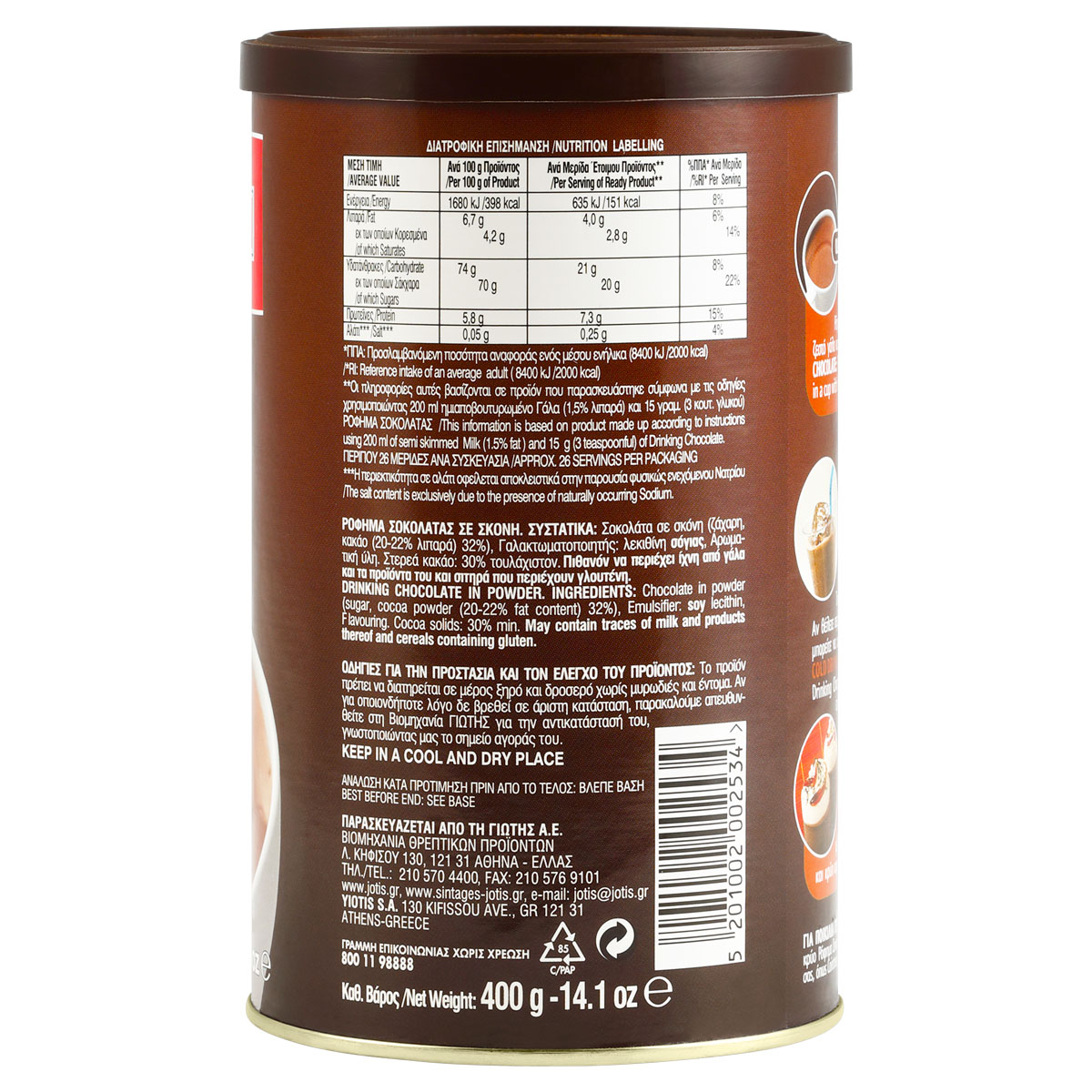 * ΑΠΟΠΟΙΗΣΗ ΕΥΘΥΝΗΣ: Η Χαλκιαδάκης ΑΕ σεβόμενη πάντα τους καταναλωτές της προσπαθεί, οι πληροφορίες που παρέχει στην ιστοσελίδα της να είναι αξιόπιστες και βάση πάντα των στοιχείων που λαμβάνει από τους συνεργαζόμενους προμηθευτές της. Πάραυτα η Χαλκιαδάκης ΑΕ ενημερώνει ότι ενδέχεται να υπάρχουν διαφορές μεταξύ των στοιχείων που αναφέρονται και των στοιχείων που αναγράφονται στις ετικέτες των προϊόντων, για τεχνικούς λόγους που μπορεί να οφείλονται στην ανανέωση των αποθεμάτων. Τα στοιχεία που παρουσιάζονται στον ιστότοπο δεν αντικαθιστούν για κανένα λόγο τα στοιχεία που αναγράφονται στις ετικέτες των προϊόντων ενώ για κάθε ασυμφωνία, υπερισχύουν πάντα οι πληροφορίες στις ετικέτες των προϊόντων. Οι καταναλωτές οφείλουν να ελέγχουν, πριν από την αγορά αλλά και πριν από την κατανάλωση του προϊόντος, τα στοιχεία που αναγράφονται στις ετικέτες και να το καταναλώνουν σύμφωνα πάντα με την προβλεπόμενη χρήση που ορίζει ο προμηθευτής. Σε περίπτωση ασυμφωνίας ο καταναλωτής παραιτείται ρητά από κάθε δικαίωμα προσφυγής εναντίον της Χαλκιαδάκης ΑΕ.