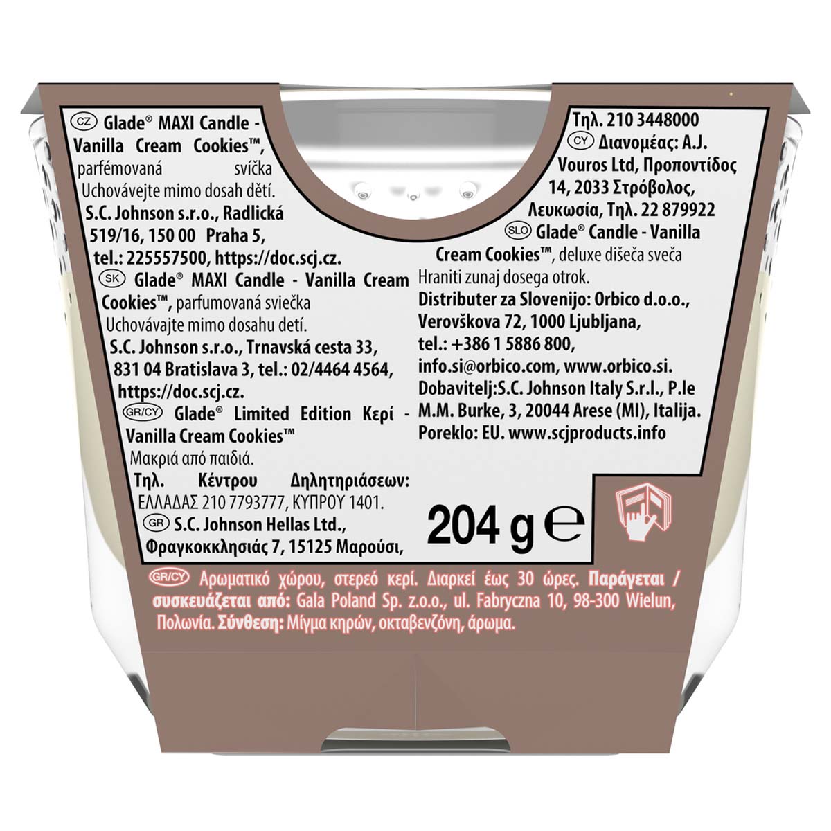 ΝΟΤΕΣ ΑΠΟ ΚΡΕΜΩΔΗ ΒΑΝΙΛΙΑ & ΦΡΕΣΚΟΨΗΜΕΝΑ ΜΠΙΣΚΟΤΑ. Το αρωματικό κερί Glade® Vanilla Cream Cookies διαθέτει έναν ισορροπημένο συνδυασμό των φρεσκοψημένων μπισκότων και τις γλυκιές νότες της βανίλιας για να δημιουργήσει ένα υπέροχα ελκυστικό άρωμα σπιτιού, γεμίζοντας τον χώρο σας με το μοναδικό του άρωμα. Προσφέρει άρωμα που διαρκεί έως 30 ώρες.