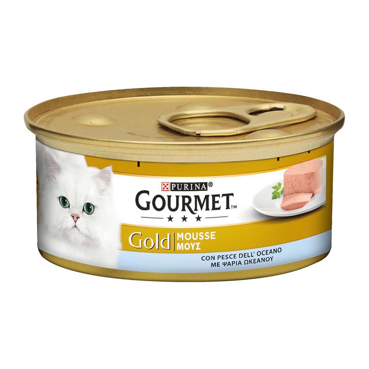 Πλήρης Τροφή για Ενήλικες Γάτες .Η γάτα σας λατρεύει να ανακαλύπτει καθημερινά νέες και διαφορετικές γεύσεις και υφές. Για αυτό το λόγο η GOURMET GOLD δημιούργησε το Μους – μια εύγευστη συνταγή που θα την κακομάθει με μια διαφορετική γευστική εμπειρία σε κάθε γεύμα. Η GOURMET GOLD με Ψάρια του Ωκεανού είναι μία πλήρης τροφή για ενήλικες γάτες που περιέχει όλες τις βιταμίνες και τα ανόργανα άλατα που χρειάζεται καθημερινά. Η GOURMET GOLD αποτελεί μια μαλακή μούς με ψάρια του ωκεανού, προσεκτικά προετοιμασμένη για να προσφέρει στη γάτα σας την απόλαυση μιας φίνας, απαλής αίσθησης καλύπτοντας παράλληλα όλες τις διατροφικές της ανάγκες.Αυτή η συσκευασία είναι σχεδιασμένη για να είναι ανακυκλώσιμη.