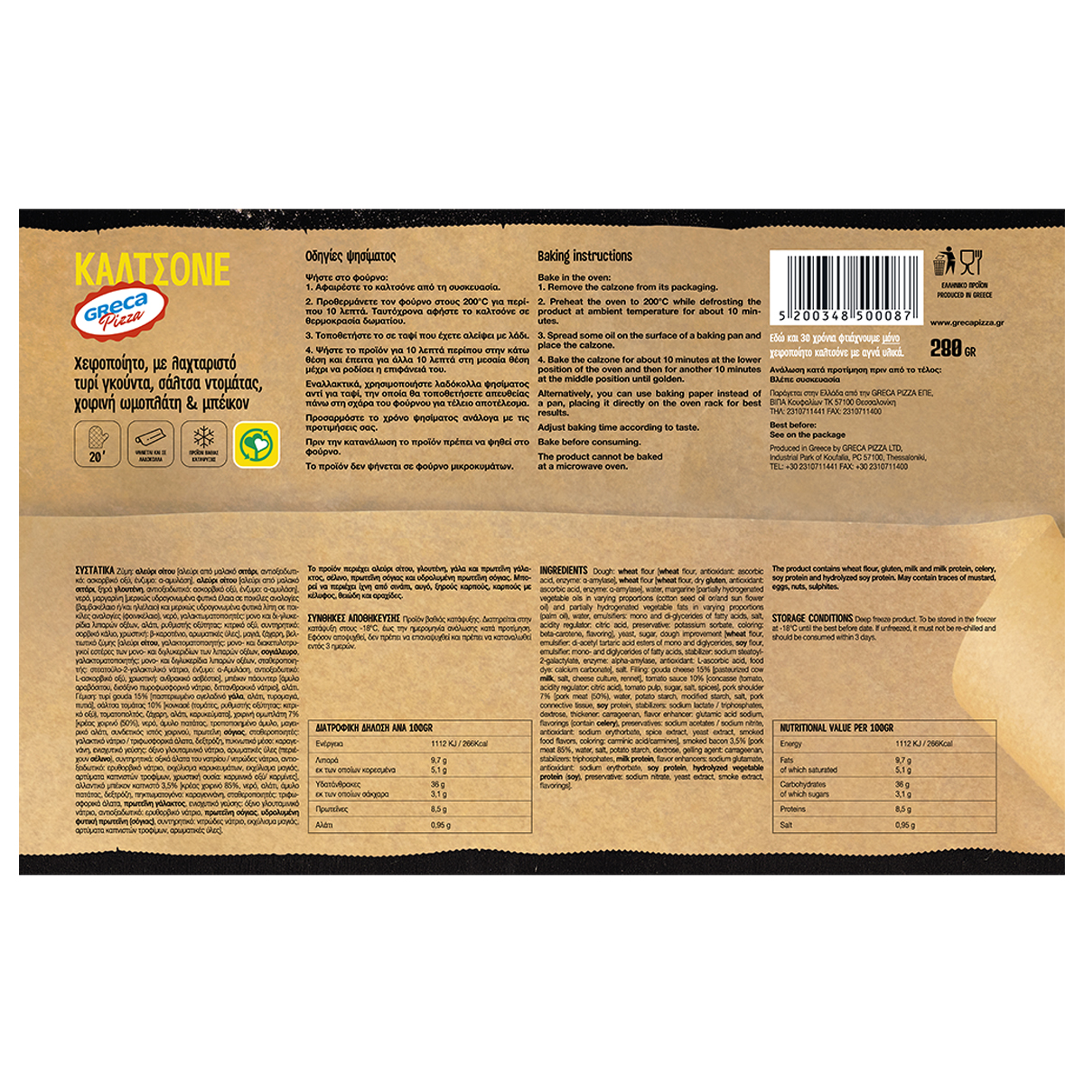 Παράγεται απο την GRECA PIZZA Ε.Π.Ε., Πρόχωμα, Τ.Κ. 57011 Θεσσαλονίκη, Τηλ.: 2310 711 441, E-mail:info@grecapizza.gr