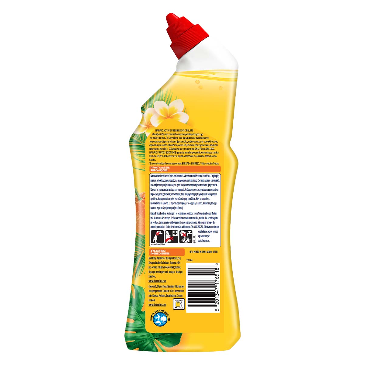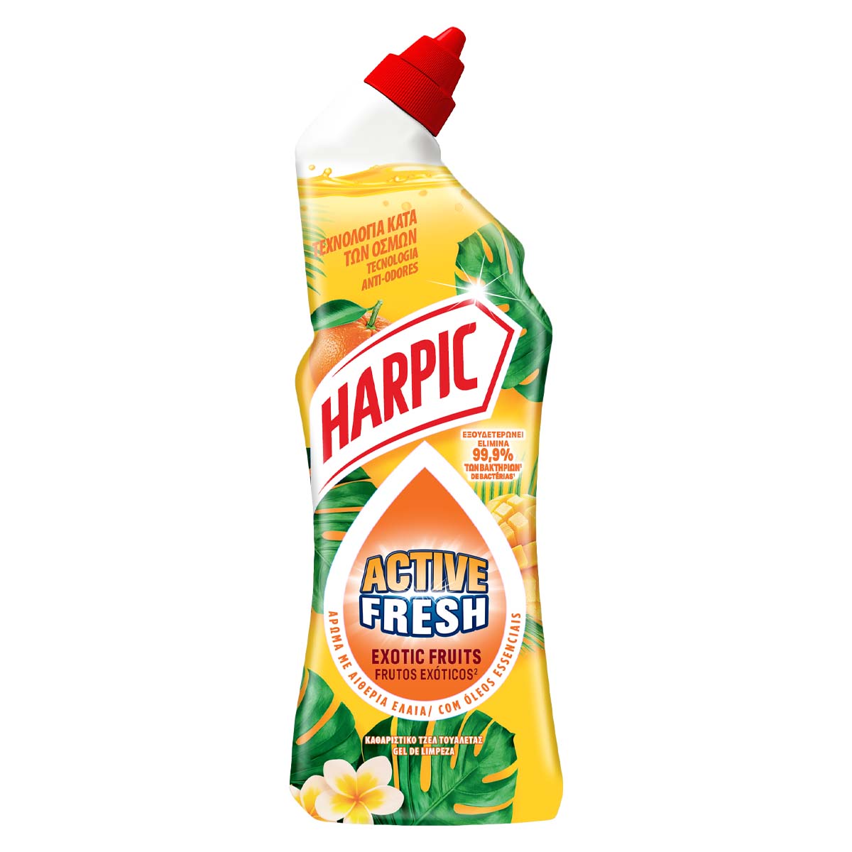 Το HARPIC ACTIVE FRESH EXOTIC FRUITS εξασφαλίζει αποτελεσματική καθαριότητα στην τουαλέτα σας. Το μοναδικό του άρωμα αφήνει φρεσκάδα στην τουαλέτα σας για ώρες. Επιπλέον εξουδετερώνει το 99.9% των βακτηρίων και αφαιρεί άλατα και λεκέδες. Εξουδετερώνει το 99,9% των βακτηριδίων. Με άρωμα ροδάκινου.