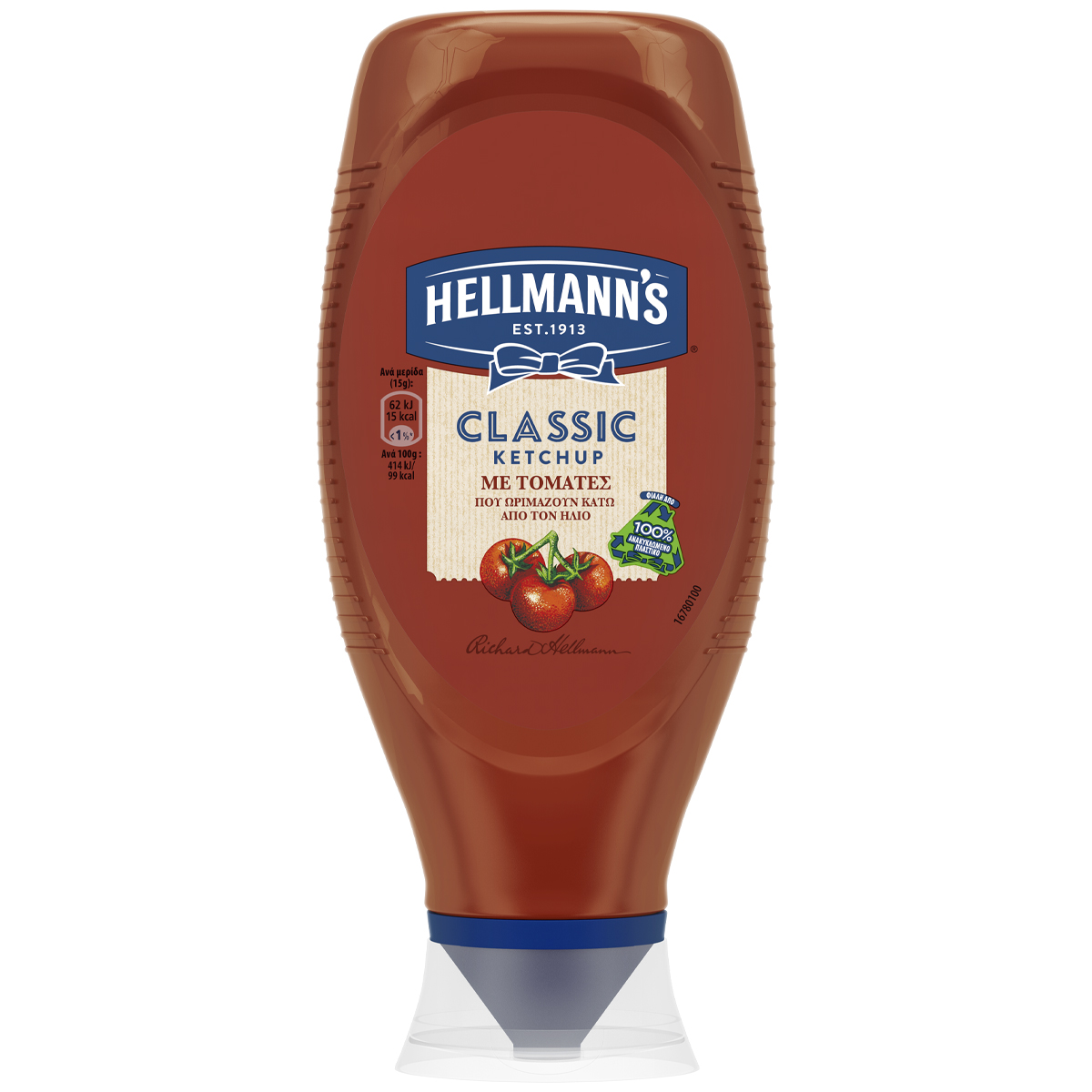 H ketchup Hellmann's classic φτιάχνεται από ώριμες τομάτες που καλλιεργούνται στην ύπαιθρο κάτω από τον ήλιο. 151γραμμάρια πραγματικής τομάτας επιλέγονται για την παραγωγή 100 γραμμαρίων κέτσαπ, εξασφαλίζοντας φυσικά την υπέροχη γεύση.