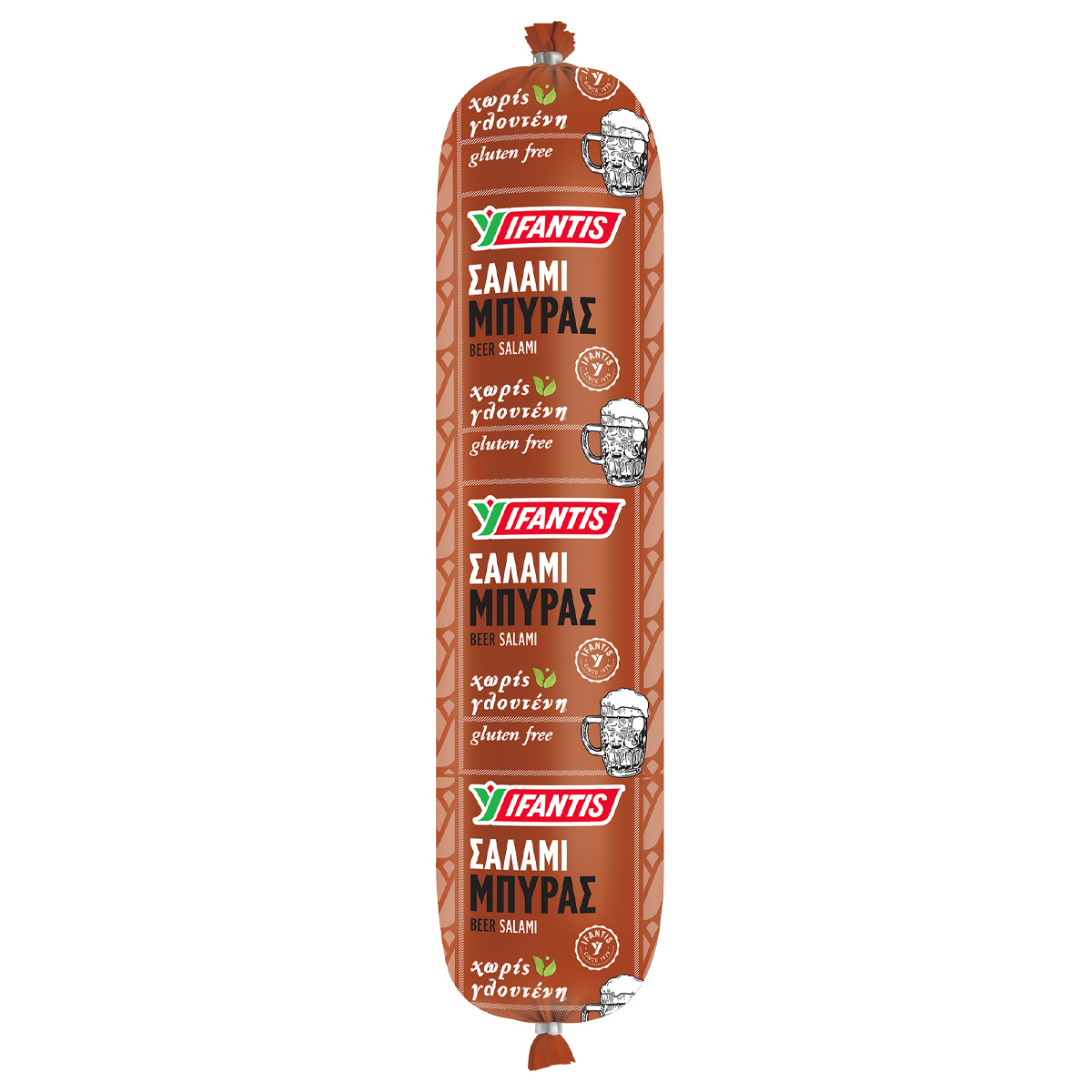 Από εκλεκτό χοιρινό κρέας. Φτιαγμένο με την παραδοσιακή συνταγή του bier-wurst. Προϊόν ημίξηρο - βραστό, από επιλεγμένα κομματάκια εκλεκτού χοιρινού κρέατος. Χωρίς γλουτένη. Με την εγγύηση ποιότητας Ifantis.