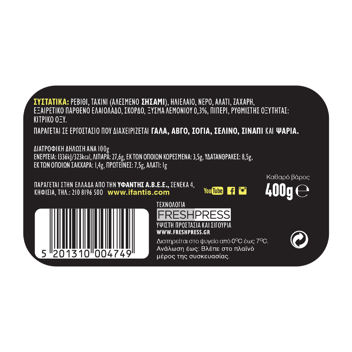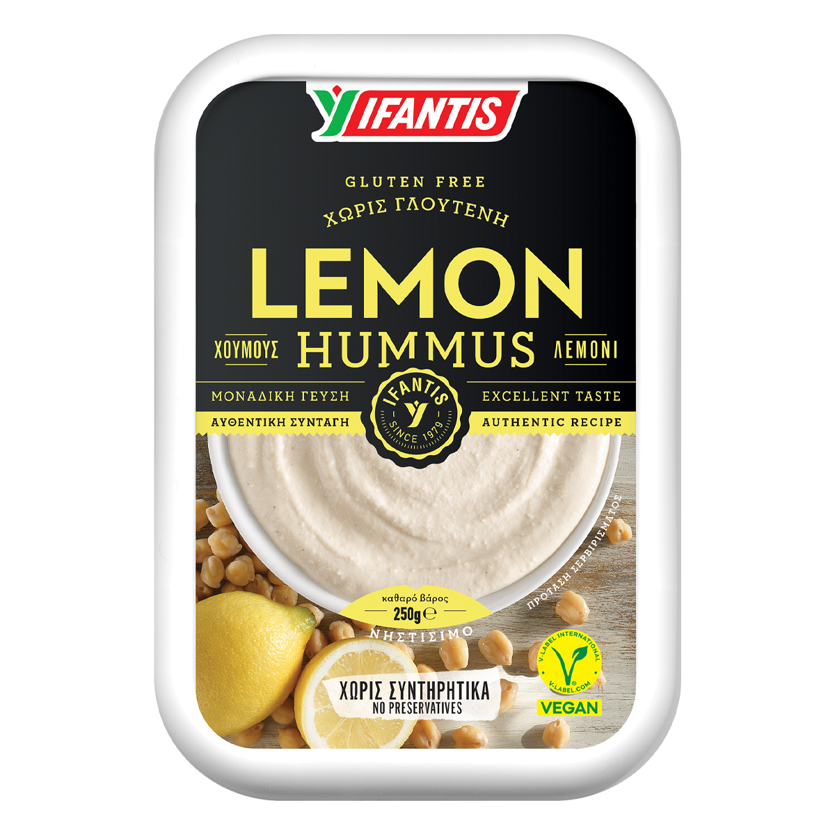 Αυθεντική συνταγή για μοναδική γεύση. Σαλάτα Χούμους Λεμόνι, φτιαγμένη με 100% ελληνικά ρεβίθια. Χωρίς συντηρητικά. Χωρίς γλουτένη. Συσκευάζεται με την πρωτοποριακή τεχνολογία FRESHPRESS που προσφέρει την καλύτερη δυνατή προστασία και σιγουριά στην παραγωγή τροφίμων, διατηρώντας αναλλοίωτη τη γεύση και τα θρεπτικά συστατικά τους για μεγαλύτερο χρονικό διάστημα μετά το άνοιγμα της συσκευασίας. Με την εγγύηση ποιότητας Ifantis.