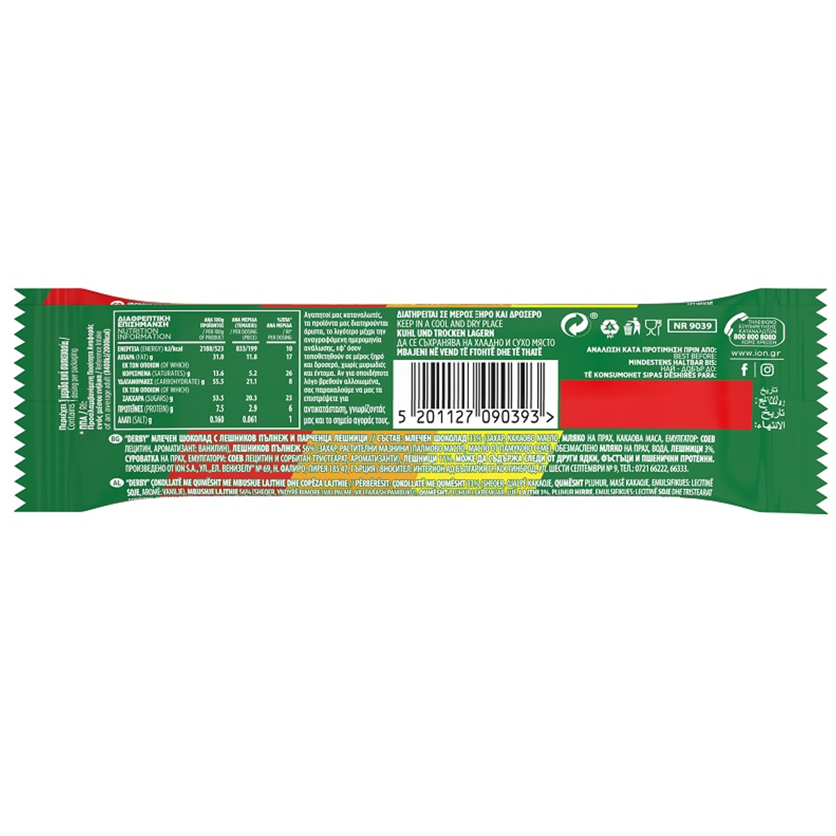 Πλούσια σοκολάτα γάλακτος ΙΟΝ, απολαυστική γέμιση φουντουκιού και ανάλαφροι, τραγανοί κόκκοι ρυζιού.