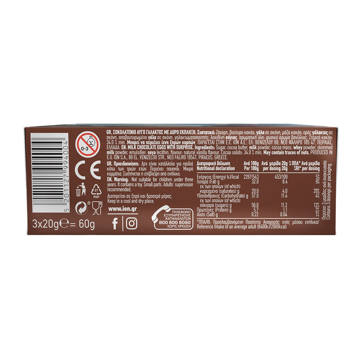 ΙΟΝ Σοκολατένια Παιχνιδοαυγά 3 x 20 gr