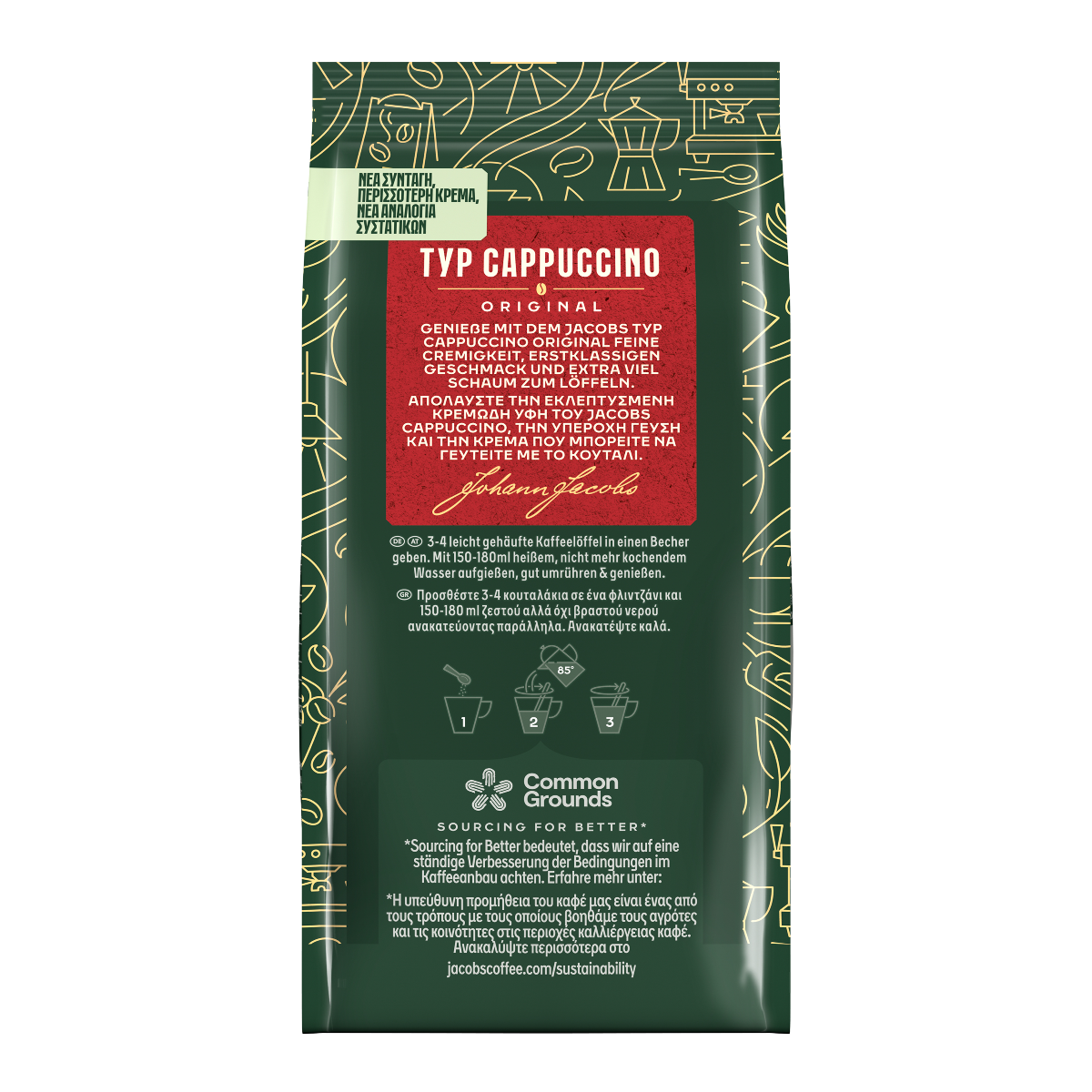 Στιγμιαίο ρόφημα καφέ Cappuccino σε σκόνη. Απολαύστε τον αγαπημένο σας JACOBS Cappuccino με πλούσια κρέμα σε κάθε μικρή απόδραση που γίνεται μοναδική.