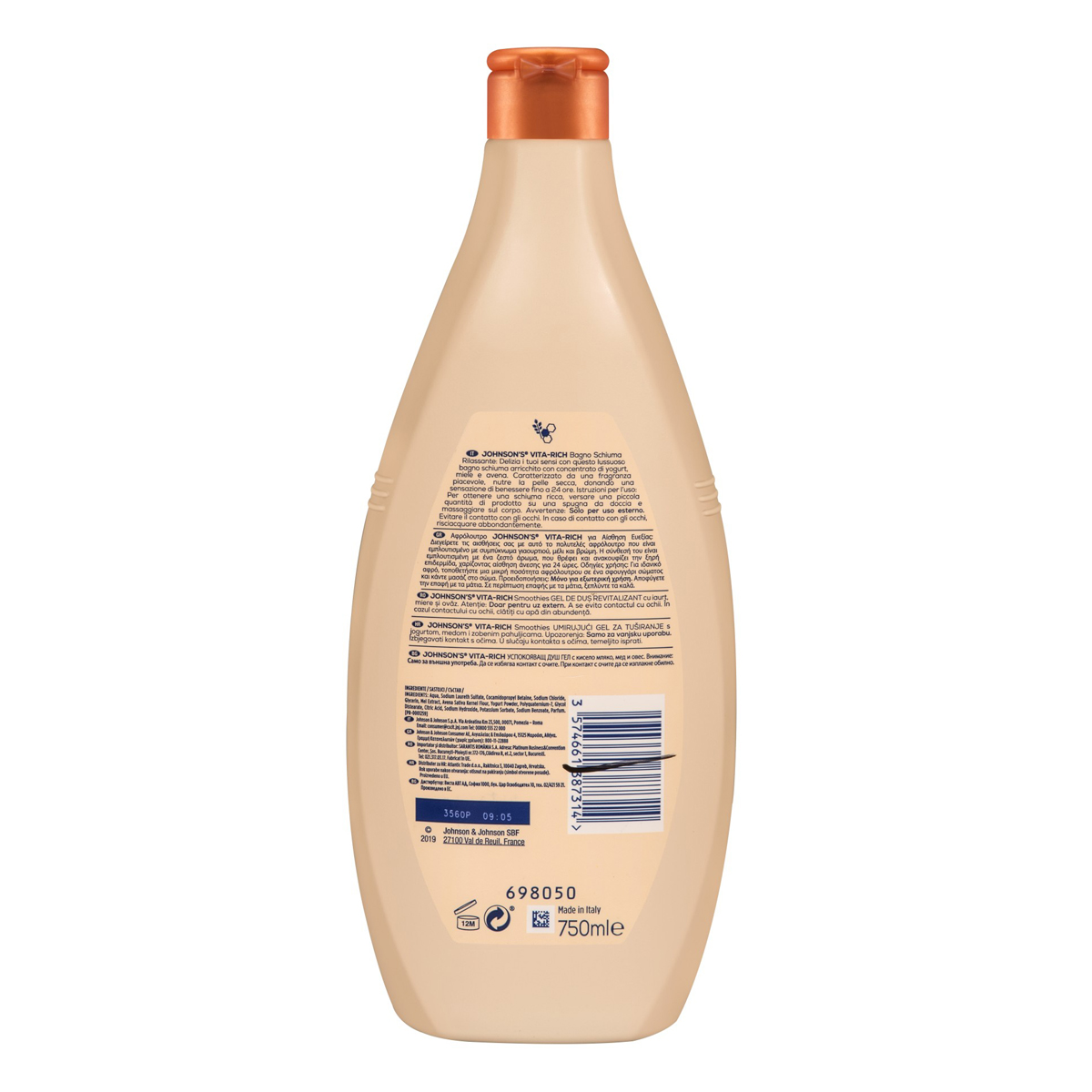 Johnson's® Vita-Rich Smoothies Comforting Αφρόλουτρο με Συμπύκνωμα Γιαουρτιού, Μέλι & Βρώμη 750ml. Χάρη στην πλούσια σύνθεση με γιαούρτι, μέλι και βρώμη, αυτό το αφρόλουτρο αναζωογονεί τις αισθήσεις. Εμπλουτισμένο με ένα διακριτικό και απαλό άρωμα, ενυδατώνει και καταπραΰνει την ξηρή επιδερμίδα, προσφέροντας αίσθηση άνεσης για 24 ώρες. Η επιδερμίδα σας είναι όμορφη, μεταξένια και απαλή, με ένα υπέροχο, διακριτικό άρωμα. Θρεπτική θεραπεία του δέρματος, εμπνευσμένη από το ελληνικό γιαούρτι για όμορφο & φωτεινό δέρμα. Η πλούσια σύνθεσή του αναζωογονεί τις αισθήσεις, ενυδατώνει & καταπραΰνει την ξηρή επιδερμίδα, προσφέροντας αίσθηση άνεσης για 24 ώρες.