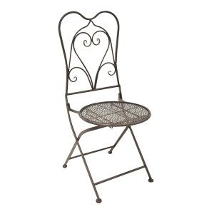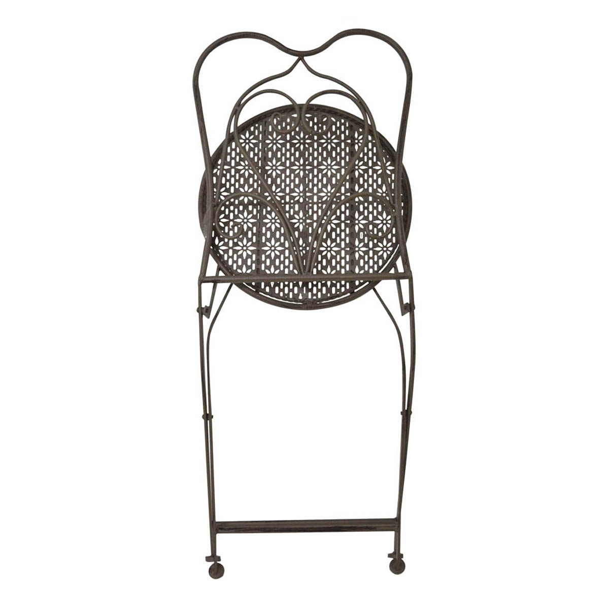 Καρέκλα μεταλλική ανακλινόμενη για εύκολη μεταφορά και αποθήκευση σε καφέ αντικέ χρώμα. Διαθέτει διάτρητη διακόσμηση στο κάθισμα και περίτεχνο σχέδιο στη πλάτη. Συνδυάστε το ιδανικά με το τραπέζι της ίδιας σειράς.