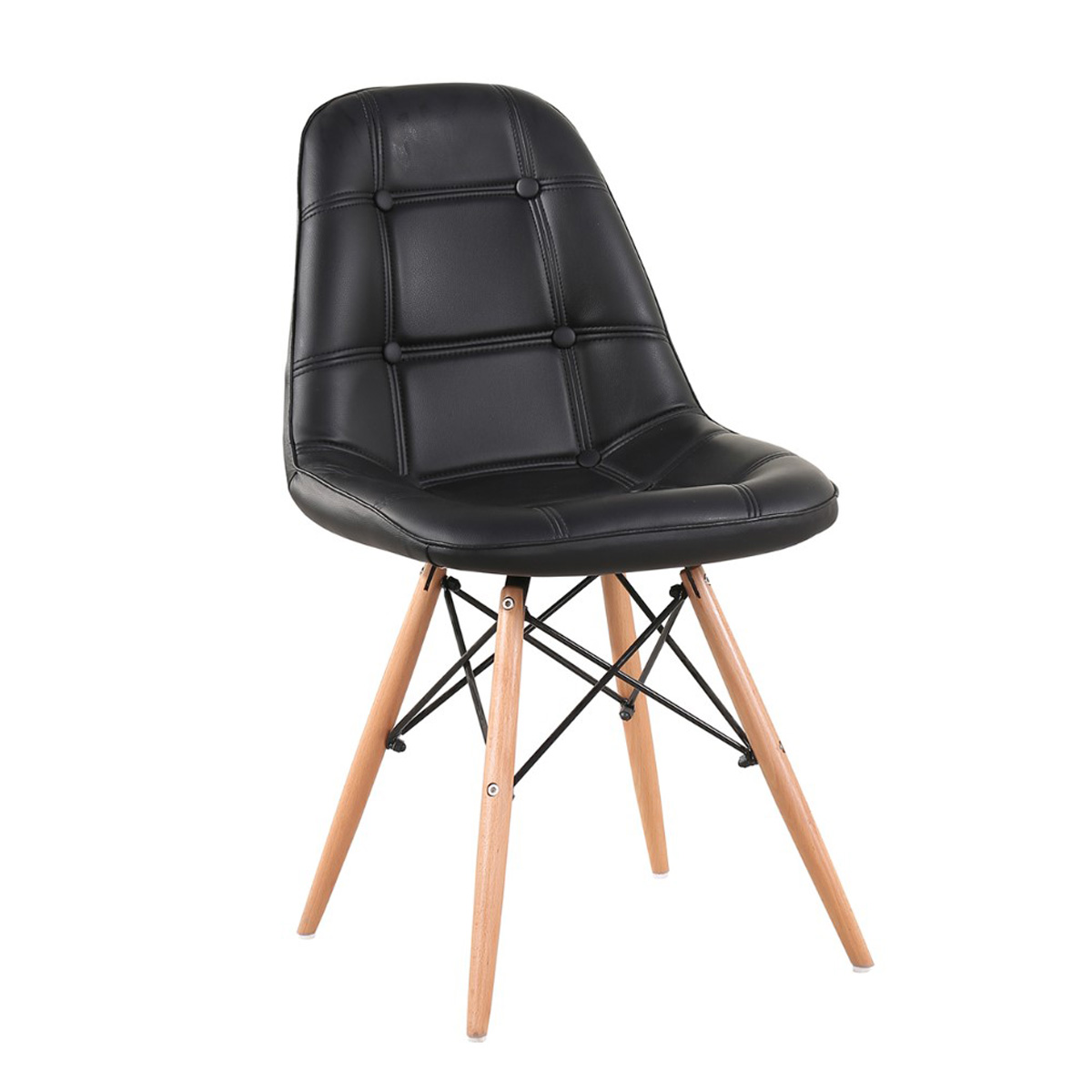 Καρέκλα Τραπεζαρίας Δερμάτινη Ξύλινα Πόδια Μαύρη 44 χ 52.5 84 cm