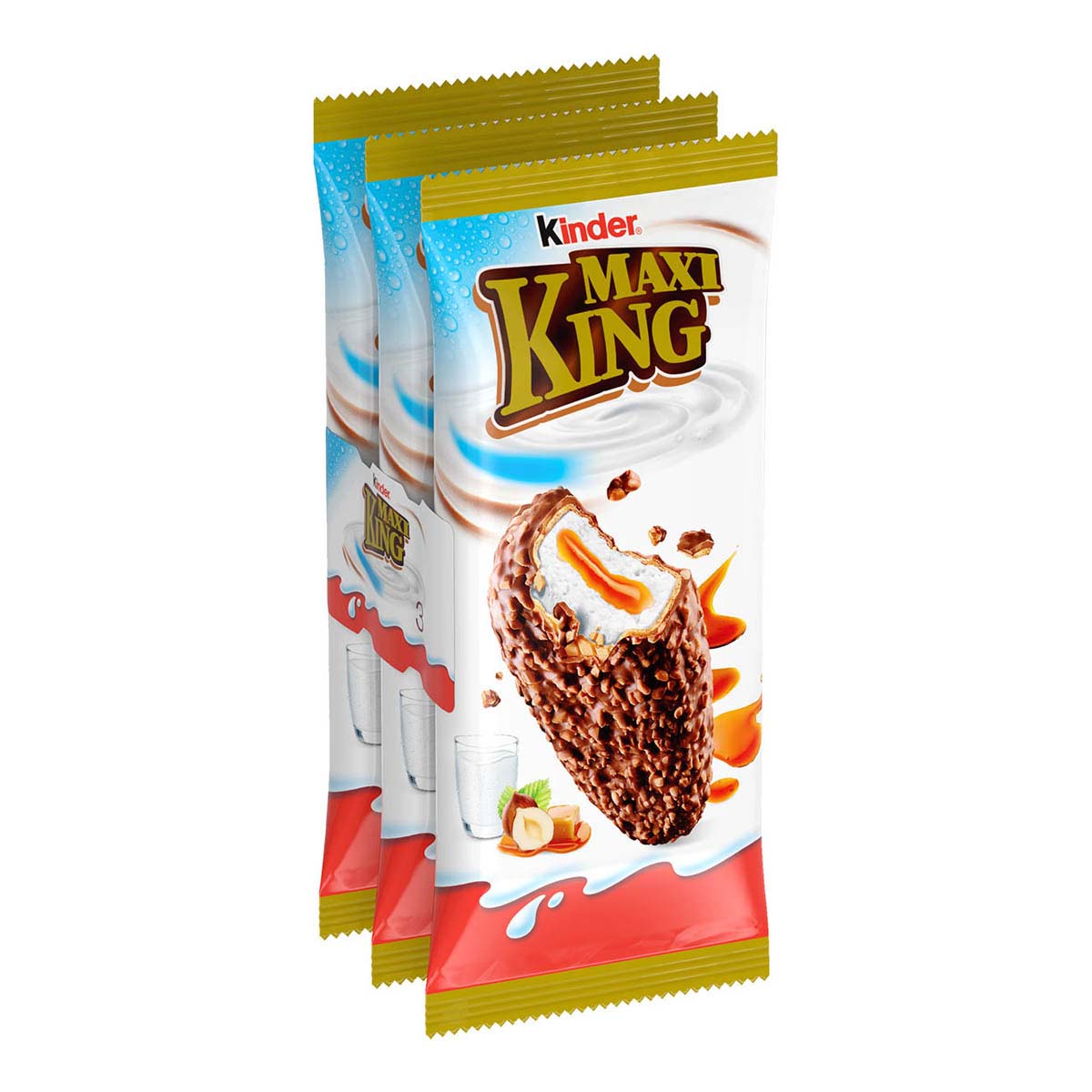 Kinder Maxi King, το σνακ που προσφέρει ένα μοναδικό και συναρπαστικό μείγμα συστατικών: επικάλυψη από τριμμένα φουντούκια και σοκολάτα, λεπτή γκοφρέτα και γέμιση από γάλα και λαχταριστή καραμέλα. Το προϊόν, λόγω των αγνών συστατικών και της απουσίας πρόσθετων συντηρητικών διατηρείται μόνο στο ψυγείο. Φυσικά, χωρίς χρωστικά πρόσθετα.