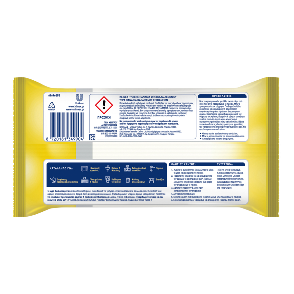 Τα υγρά βιοδιασπώμενα πανάκια Klinex Hygiene, είναι ιδανικά για γρήγορη, υγιεινή καθαριότητα σε όλο το σπίτι. Η σύνθεσή τους, αφαιρεί αποτελεσματικά σκόνη, βρομιά, λίπη & υπολείμματα σαπουνιού. Απελευθερώνουν υπέροχο άρωμα καθαριότητας. Κατάλληλα για επιφάνειες προετοιμασίας φαγητού & παιδικά παιχνίδια (σκληρά). Δρούν ενάντια σε βακτήρια, εγκαψιδιωμένους ιούς τον κορωνοϊό SARS-CoV-2.