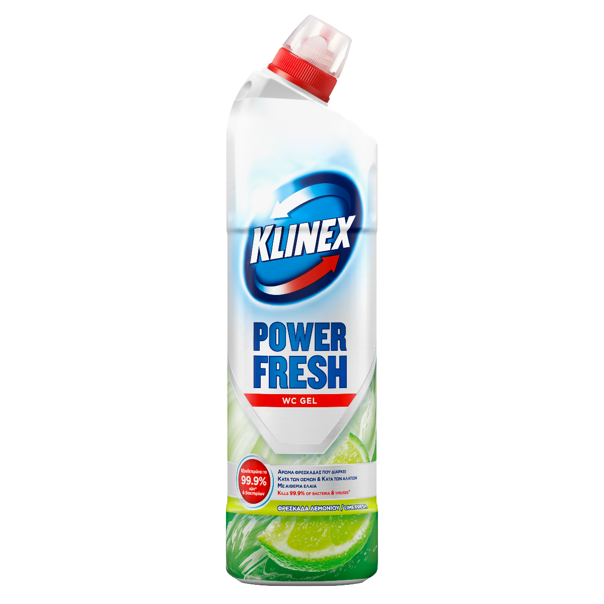 To Klinex WC Gel Φρεσκάδα Λεμονιού, με βιοδιασπώμενο άρωμα, καταπολεμά τις οσμές & εξουδετερώνει το 99,9% ιών* & βακτηρίων. Επιπλέον, αφαιρεί τα άλατα ακόμα και κάτω από το χείλος της λεκάνης και αφήνει στη τουαλέτα ένα άρωμα φρεσκάδας που διαρκεί.