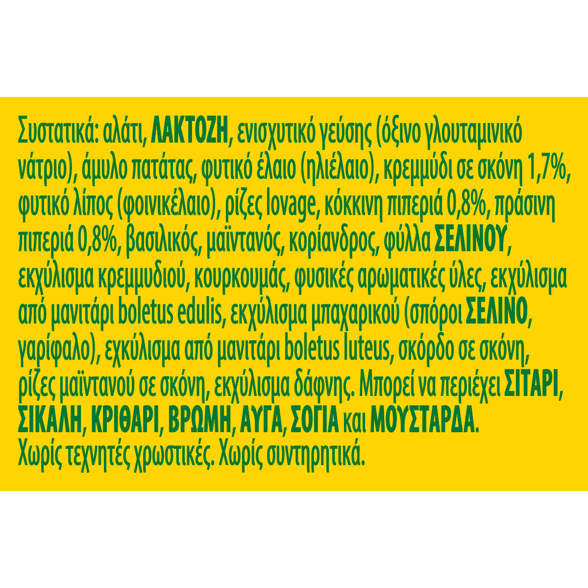Το Knorr Aromat Μίγμα Λαχανικών και Μυρωδικών είναι ένας συνδυασμός από εκλεκτά λαχανικά και μυρωδικά και είναι ιδανικό για τις σαλάτες, τις τηγανιτές πατάτες, τα λαχανικά, το κοτόπουλο και τα ψητά. Για πολύ γευστικό κρέας, λαχανικά και πολλά άλλα…