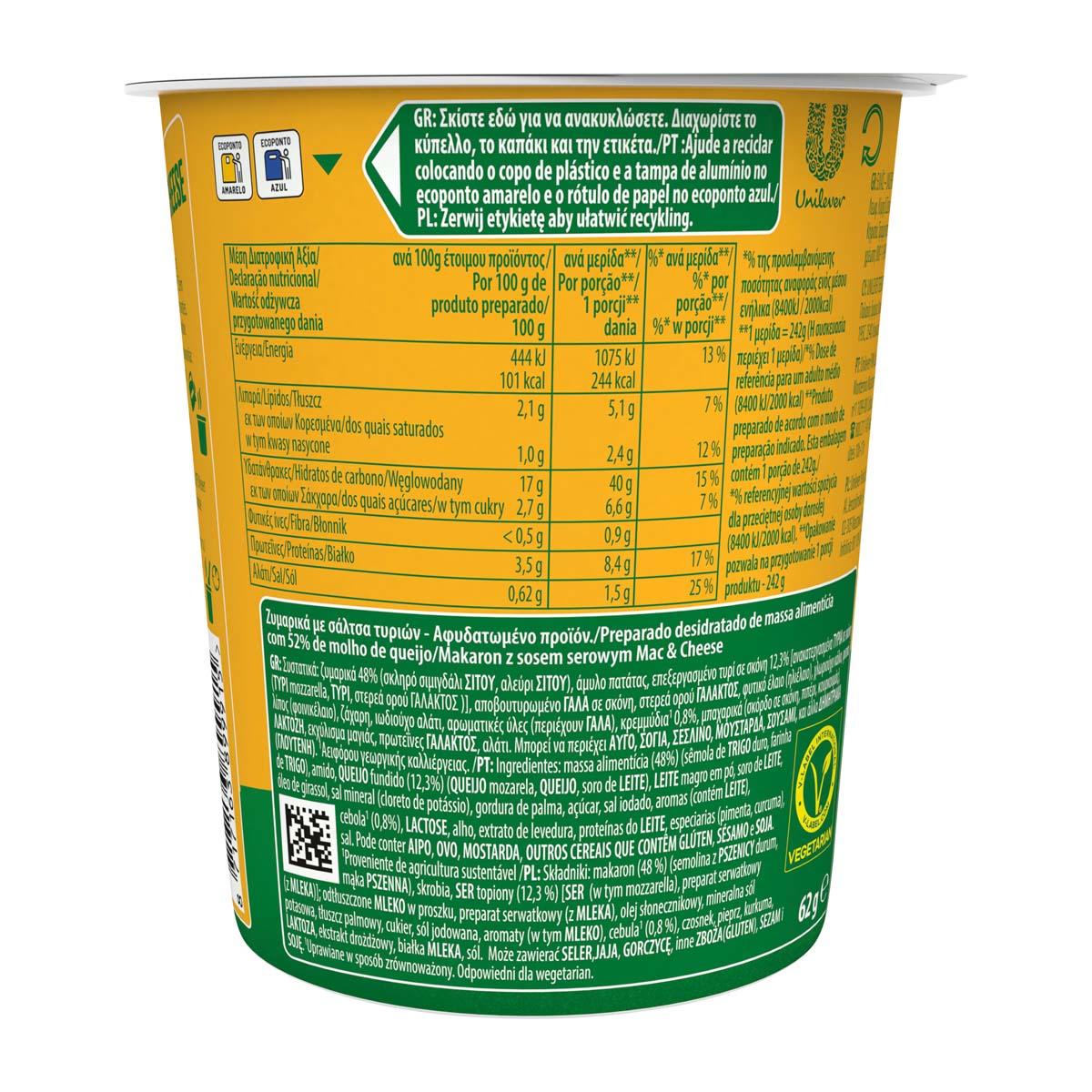 Όταν ψάχνετε ένα γρήγορο και χορταστικό snack, ένα από τα Knorr Pasta Snack Pots είναι η ιδανική λύση. Έτοιμο εύκολα και γρήγορα, χρειάζεστε μόνο ζεστό νερό και ένα πιρούνι για να απολαύσετε λαχταριστή μακαρονάδα μέσα σε μόνο 5'! Μπορείτε να το απολαύσετε στο σπίτι, το γραφείο, τη σχολή, το ταξίδι ή όπου και εάν βρίσκεστε. Το Knorr Pasta Snack Pot Mac & Cheese είναι ιδανικό για τους λάτρεις του λιωμένου τυριού.