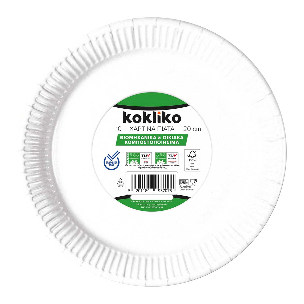 Kokliko Πιάτα Χάρτινα Compostable Μεσαία Λευκά 20 cm 10 Τεμάχια