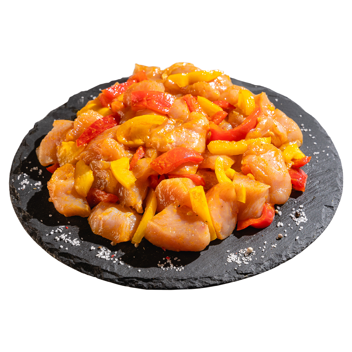 Ελληνικό κοτόπουλο, πιπεριά, αλάτι, μπαχαρικά (περιέχεται ΣΙΝΑΠΙ), κρεμμύδι αφυδατωμένο, βότανα, ζάχαρη, σκόρδο αφυδατωμένο, εκχύλισμα μαγιάς, εκχυλίσματα μπαχαρικών (περιέχουν ΣΕΛΙΝΟ), ηλιέλαιο.