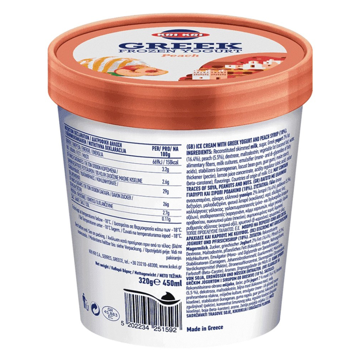 Παγωτό με αυθεντικό ελληνικό γιαούρτι και απολαυστικό σιρόπι ροδάκινο.