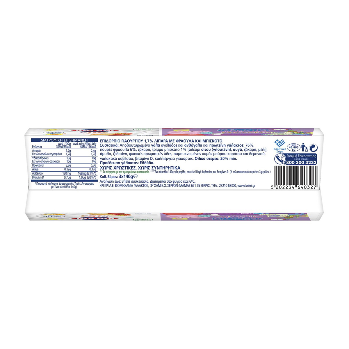 Ένα απολαυστικό παιδικό επιδόρπιο γιαουρτιού με αγαπημένη φράουλα και λαχταριστά σοκομπιλάκια ΙΟΝ, παρέα με τον αγαπημένο μας Scooby Doo! Παρασκευάζεται μόνο από 100% ελληνικό γάλα ημέρας, χωρίς συντηρητικά και χρωστικές, αποτελεί καλή πηγή ασβεστίου και βιταμίνης D αλλά και την υγιεινή επιλογή για ένα θρεπτικό γευματάκι με λίγες θερμίδες και χαμηλά λιπαρά που θα λατρέψει κάθε παιδί.