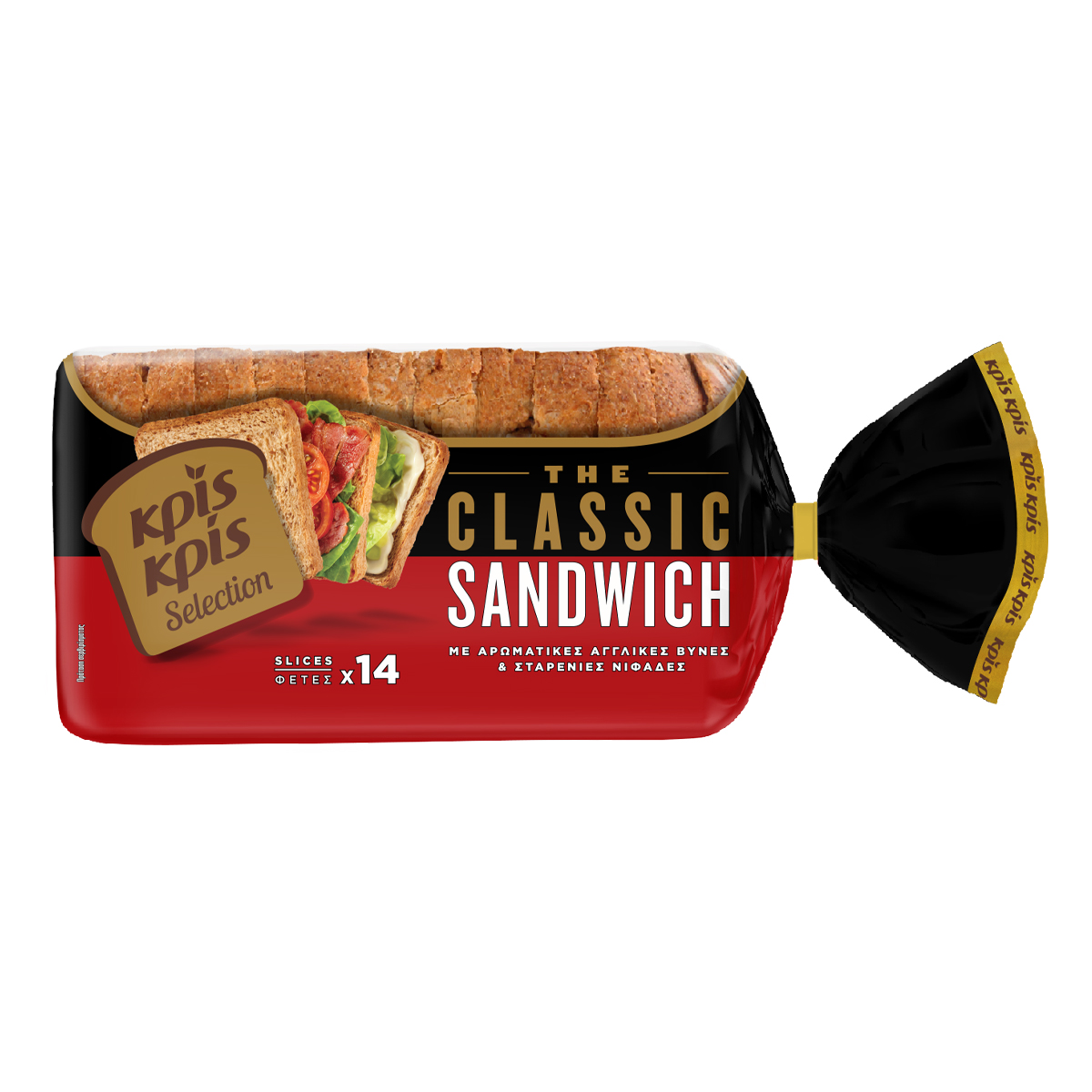 Το Κρίς Κρίς Selection The Classic Sandwich, εμπνέεται από την παράδοση που ξεκίνησε από τους Βενεδικτίνους μοναχούς του Burton Abbey, προσθέτοντας τη χαρακτηριστική γεύση και τα μοναδικά αρώματα των βυνοποιημένων αλεύρων και νιφάδων σιταρού σε ένα μοναδικό, καθημερινό ψωμί σε φέτες. Ιδιαίτερα αρωματικό και γευστικό, το Κρίς Κρίς Selection The Classic Sandwich, σας δίνει τη δυνατότητα να φτιάξετε τα πιο απολαυστικά και χορταστικά σάντουιτς και ψωμένια σνακ.