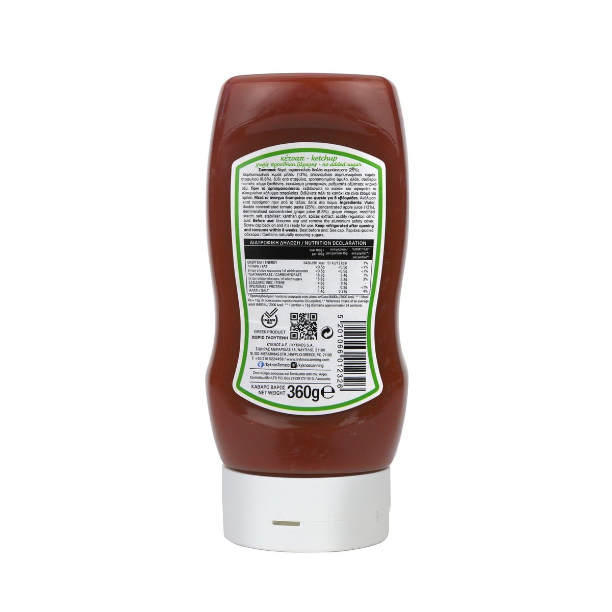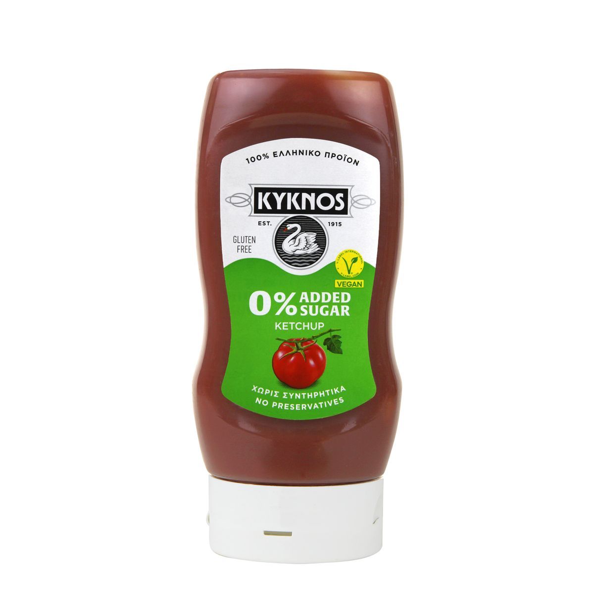 Η νέα KYKNOS Ketchup 0% Προσθήκη Ζάχαρης έρχεται να χαρίσει γευστικές στιγμές απολαύσης χωρίς ίχνος προσθήκης ζάχαρης. Η ΚΥΚΝΟΣ πρωτοπορεί με μια νέα συνταγή κέτσαπ χωρίς προσθήκη ζάχαρης, αλλά με φυσικά σάκχαρα (χυμούς φρούτων), επιτρέποντας στον καταναλωτή να την χρησιμοποιεί στα πιάτα του χωρίς δεύτερες σκέψεις, χωρίς κανένα συμβιβασμό στη γεύση και στην απόλαυση των αγαπημένων πιάτων του και χωρίς κανέναν ενδοιασμό για την ποιότητα και τη μοναδική της γεύση. Χωρίς συντηρητικά & τεχνητές χρωστικές ύλες και γλουτένη, από 100% διαλεχτές Ελληνικές Τομάτες που ωριμάζουν στον εύφορο κάμπο της Ηλείας και συλλέγονται την ιδανική στιγμή της ωρίμανσής τους. Απόλυτα μοναδική, χαρακτηριστική «τοματένια» γεύση σαν το σπιτικό! Τώρα και σε μικρότερη πρακτική ανάποδη πλαστική φιάλη των 360g.