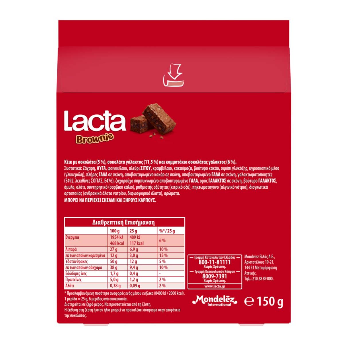 Το αγαπημένο σου Lacta Brownie τώρα σε μεγαλύτερη συσκευασία για να το απολαμβάνεις όποτε θέλεις. Έξι Lacta Brownies σε μεμονωμένο περιτύλιγμα σε περιμένουν να τα καταναλώσεις μόνος... ή με την παρέα σου!