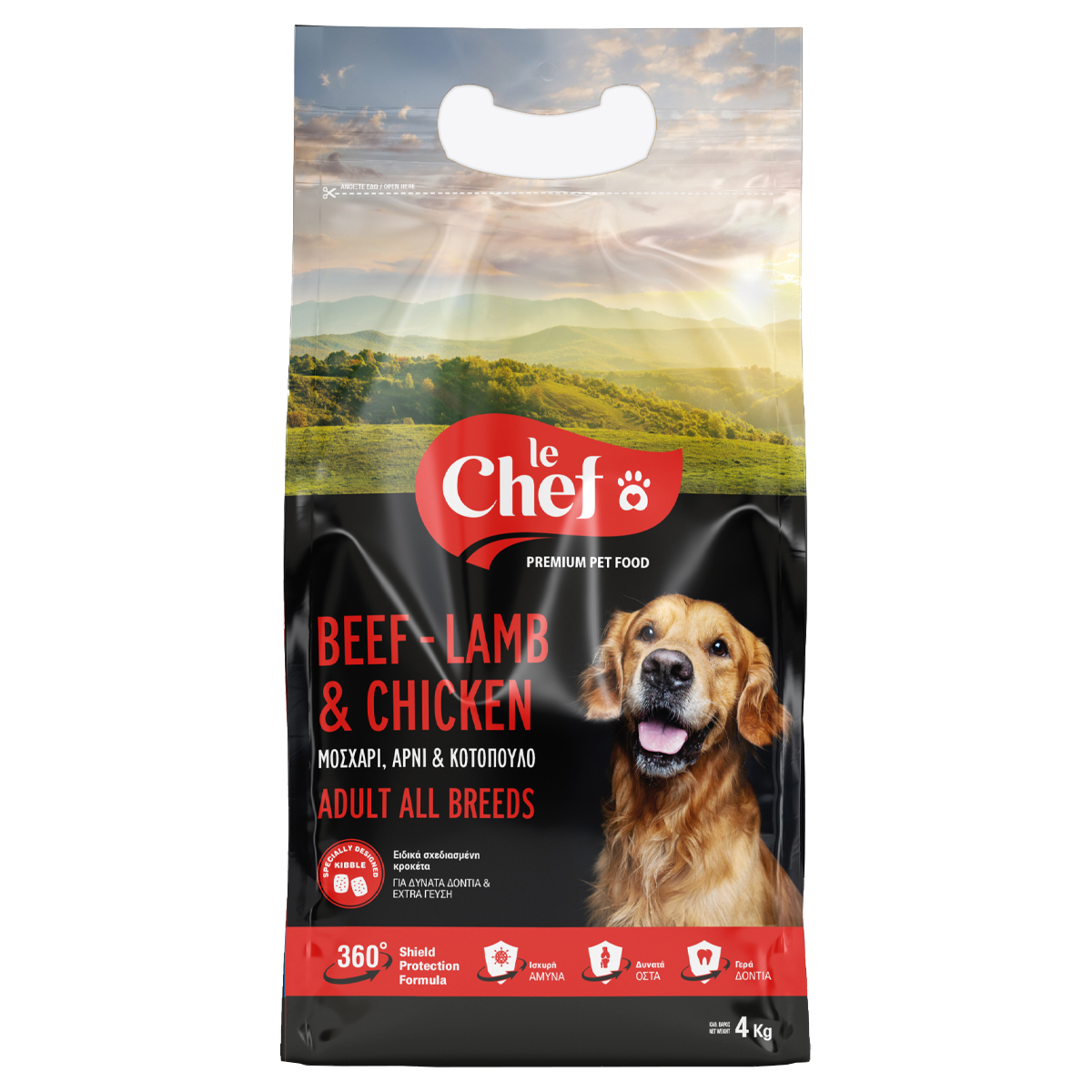Le Chef Ξηρά Τροφή Για Σκύλους Με Μοσχάρι Αρνί & Κοτόπουλο 4 kg