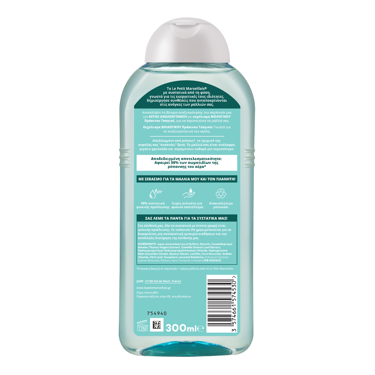 Σαμπουάν Le Petit Marseillais® DETOX ΑΝΑΖΩΟΓΟΝΗΣΗ με ΒΙΟΛΟΓΙΚΟ Εχύλισμα Θυμαριού και ΒΙΟΛΟΓΙΚΟ Πράσινο Τσάι για κανονικά μαλλιά. Το τριχωτό της κεφαλής Ανακουφίζεται & Ενυδατώνεται, Ενυδατωμένα μαλλιά, χωρίς να βαραίνουν, Απαλά & Λαμπερά μαλλιά από τη ρίζα ως τις άκρες.
