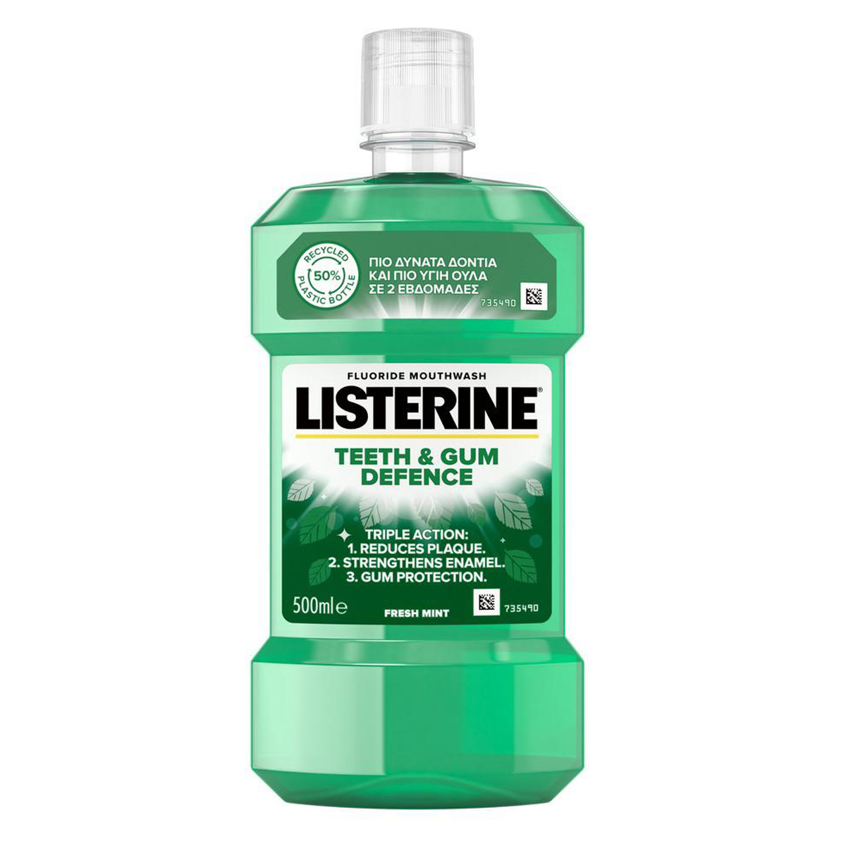 Το LISTERINE® Teeth & Gum Defence, με χρήση δυο φορές την ημέρα: παρέχει προστασία για πιο υγιή ούλα ενώ προσφέρει μια αίσθηση καθαριότητας που διαρκεί 3 φορές περισσότερο από το βούρτσισμα μόνο. Είναι κλινικά αποδεδειγμένο ότι το LISTERINE® TEETH AND GUM DEFENCE: Περιέχει φθόριο που ενδυναμώνει τα δόντια βοηθώντας στην προστασία από την τερηδόνα, Μειώνει την πλάκα διατηρώντας τα ούλα υγιή και δρα ακόμα και κάτω από τη γραμμή των ούλων, Βοηθά στην πρόληψη της ουλίτιδας.