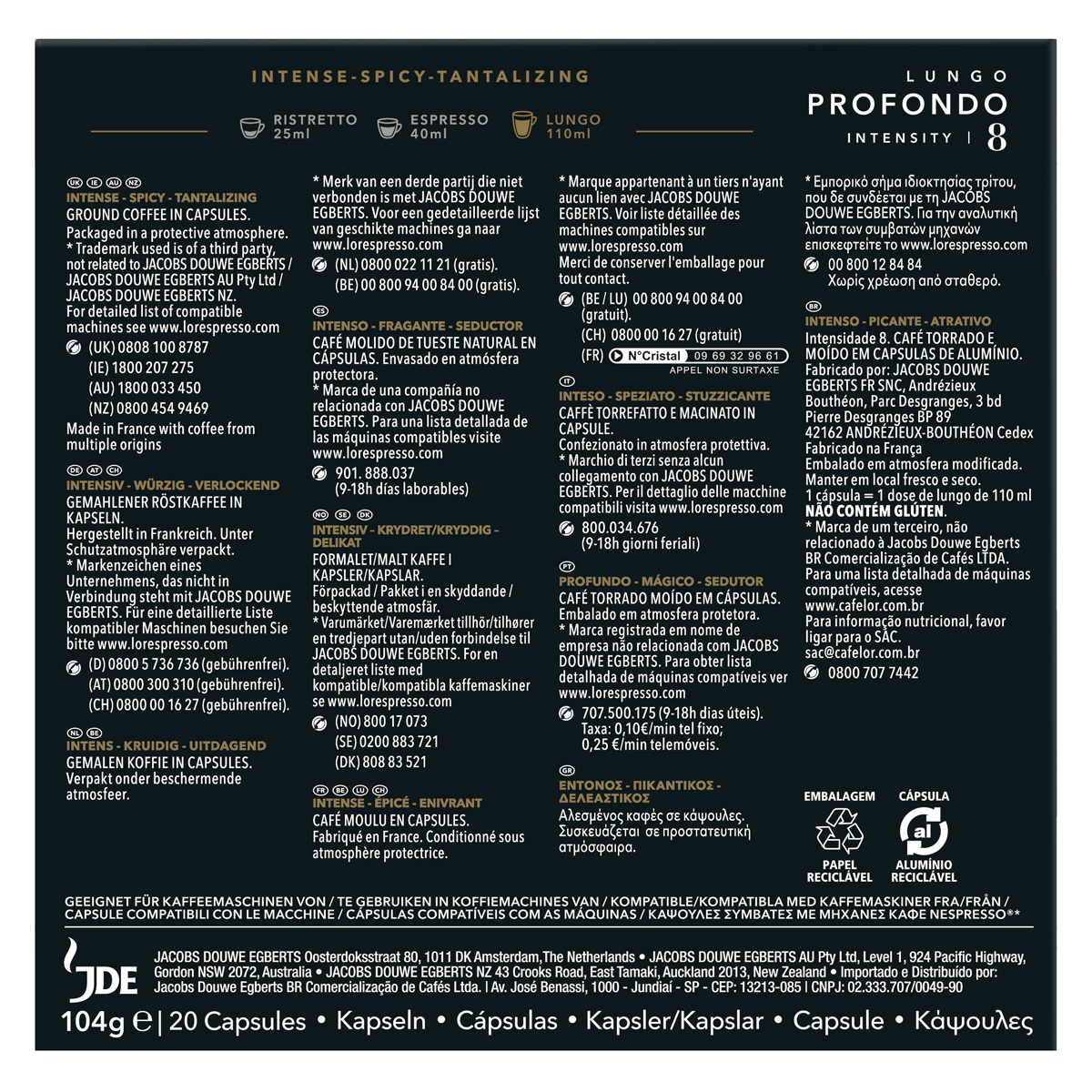 Ο Lungo Profondo αυξάνει την ένταση με το δυνατό, πικάντικο άρωμα του καβουρδισμένου αμυγδάλου και της δελεαστικής γλυκόριζας, που περικλείονται απο πλούσια χάλκινη κρέμα. Συμβατές Με Μηχανή Nespresso.