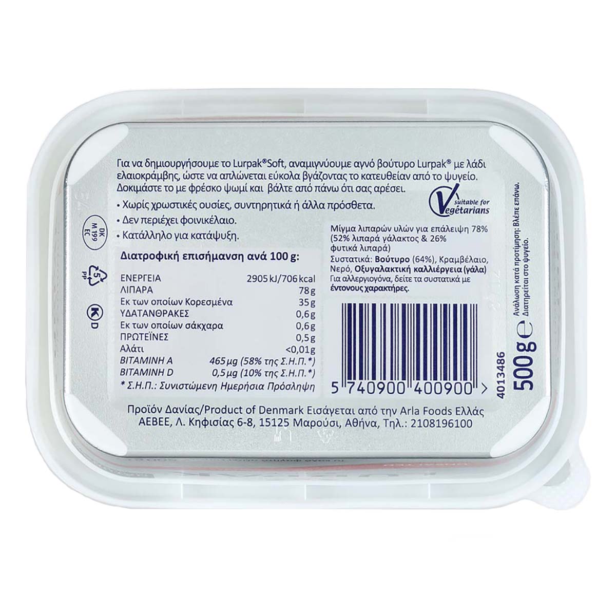 Μπορείτε εύκολα να καταλάβετε γιατί όποιος δοκίμασε αυτό το Lurpak® το λατρεύει. Το Lurpak® Soft Ανάλατο που αλείφεται εύκολα είναι κρεμώδες, φρέσκο και νόστιμο, χωρίς αλάτι ή τεχνητές προσθήκες. Μπορείτε ελεύθερα να το αλείψετε σε τοστ, να το προσθέσετε σε ζεστά κέικ, να το αφήσετε να λιώσει πάνω από αχνιστά λαχανικά.