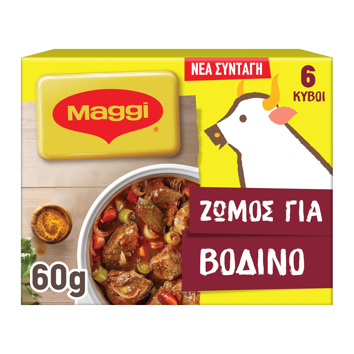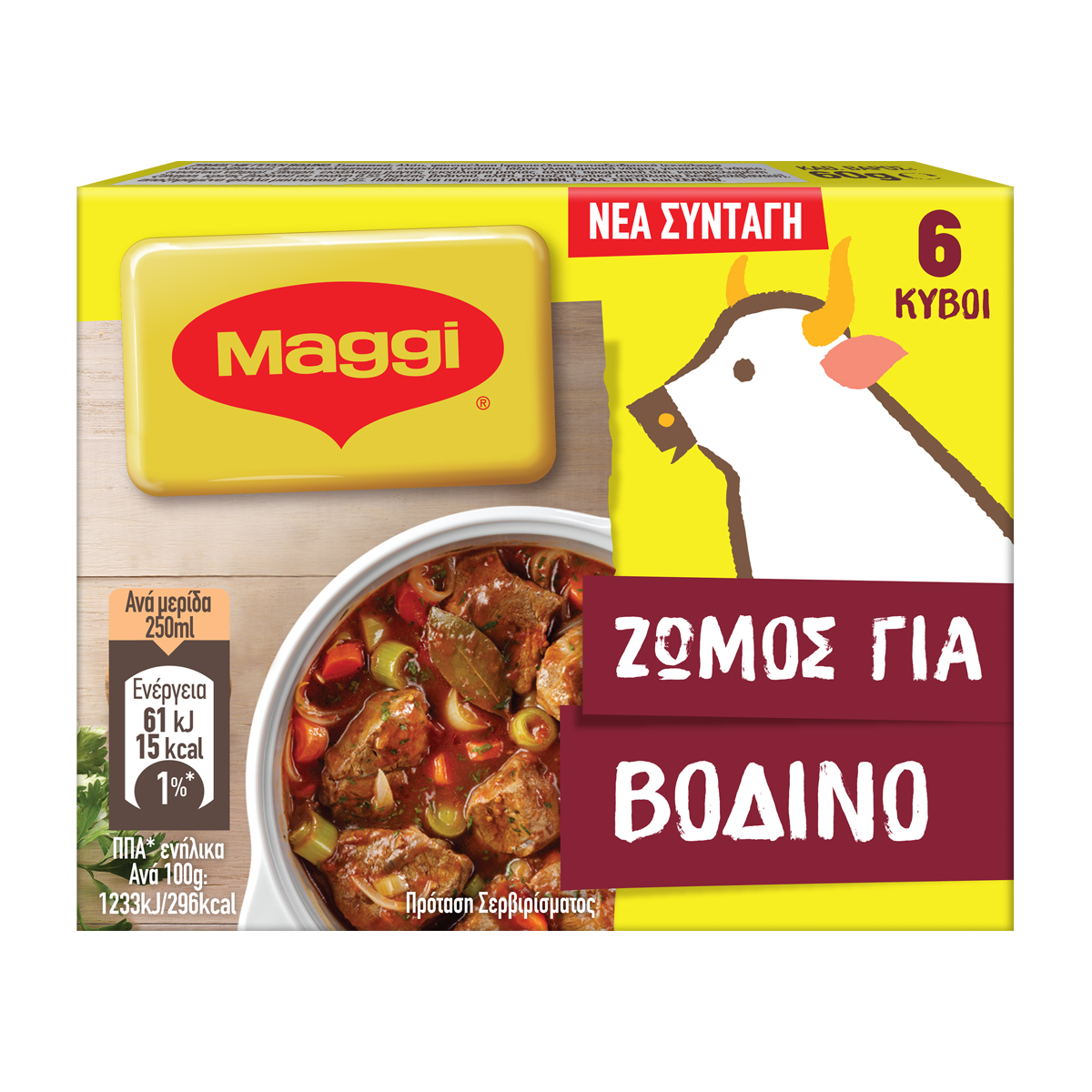 Ζωμός με γεύση βοδινού. MAGGI ΖΩΜΟΣ ΒΟΔΙΝΟΥ, Ενισχύστε την γεύση των σπιτικών σας μαγειρεμάτων με τους κύβους MAGGI! Στους κύβους MAGGI τα λαχανικά αποξηραίνονται και κλείνονται μέσα σε ένα μικρό κύβο απελευθερώνοντας όλη τους τη γεύση μέσα στο φαγητό. Με τον ΜΑGGI ΖΩΜΟ ΓΙΑ ΒΟΔΙΝΟ δώστε πλούσια γεύση στο φαγητό σας χωρίς να χρειάζεται να προσθέσετε επιπλέον αλάτι. Έτσι, ελέγχετε την ποσότητα αλατιού που λαμβάνετε, χαρίζοντας ακόμα μεγαλύτερη νοστιμιά στο φαγητό σας.