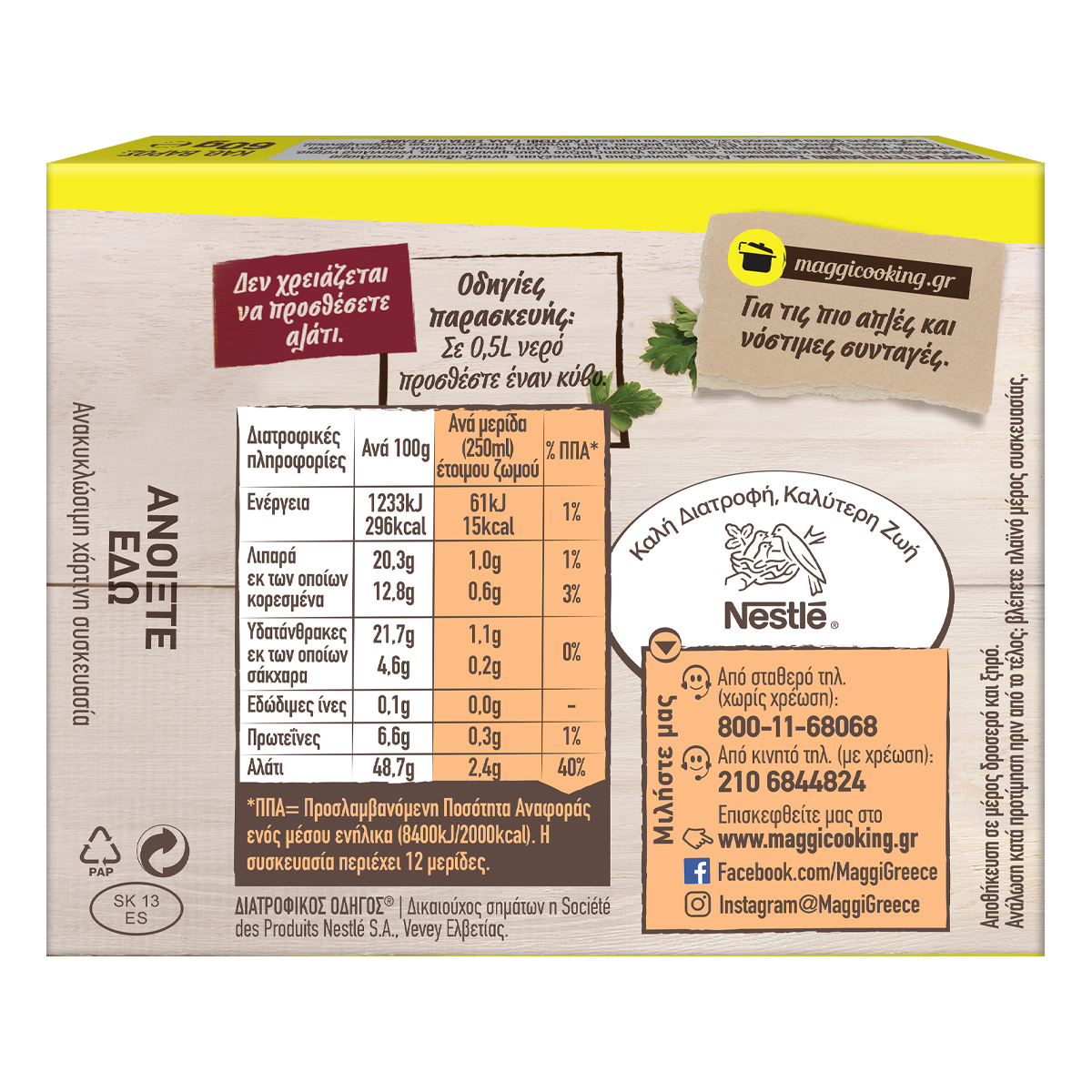 | Αλάτι (ανά 100g) | 48.7 g |