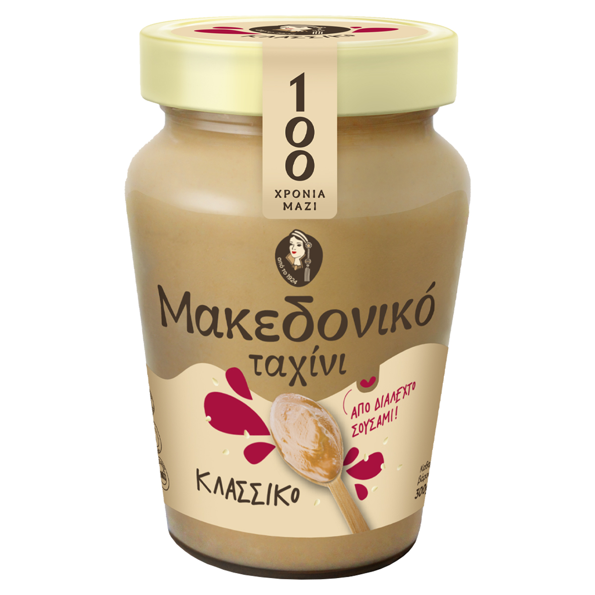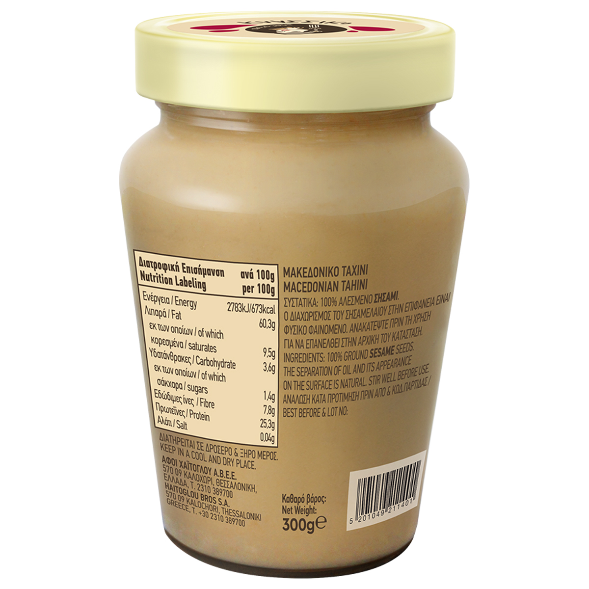 Το Μακεδονικό Ταχίνι παράγεται μόνο από εκλεκτούς σπόρους σουσαμιού σε παραδοσιακούς μύλους χωρίς χημική επεξεργασία ή πρόσθετα.