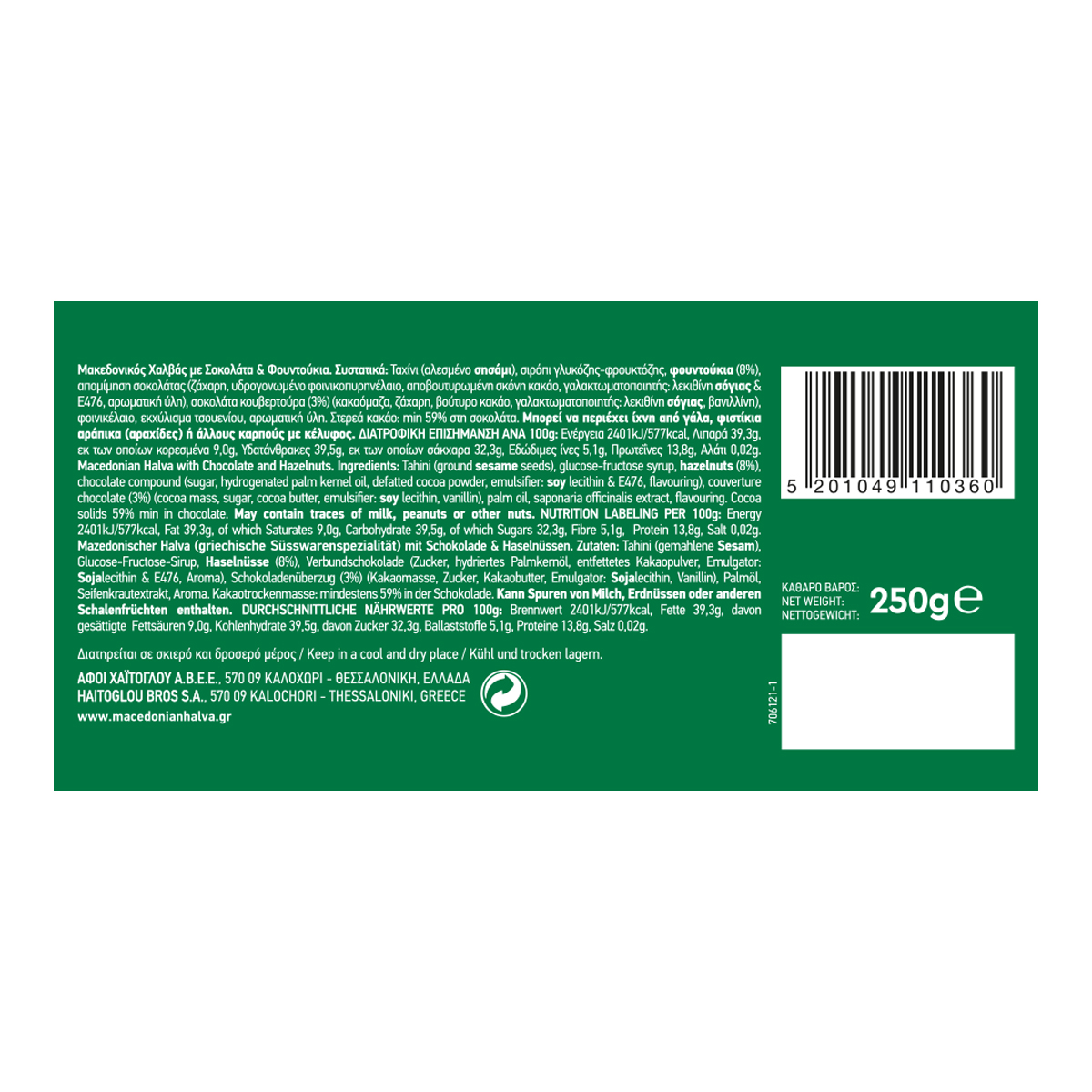 Μακεδονικός Χαλβάς Με Σοκολάτα & Φουντούκια Vegan Χωρίς Γλουτένη 250 gr