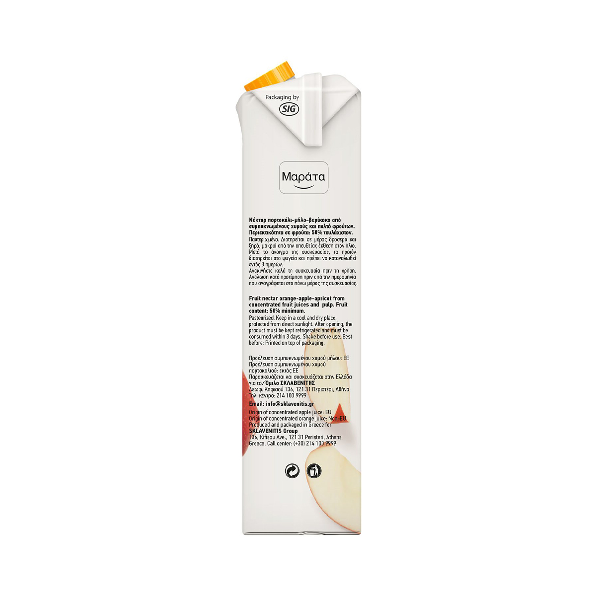 Απολαύστε το χυμό Μαράτα με υπέροχη γεύση πορτοκάλι, μήλο και βερίκοκο.