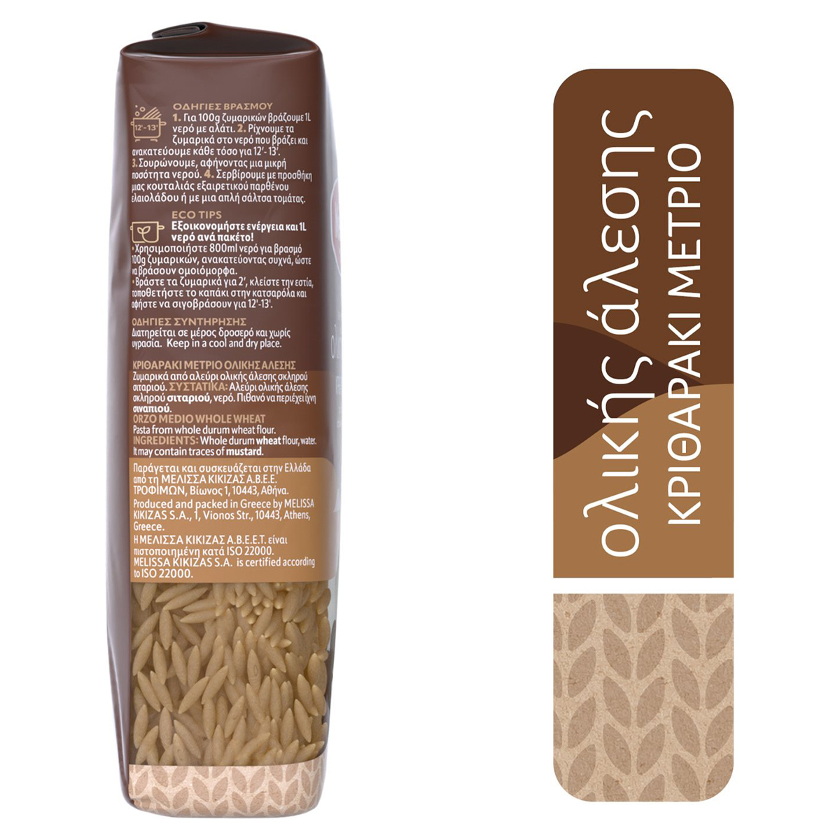 Τα ζυμαρικά Melissa κριθαράκι μέτριο ολικής άλεσης φέρνουν κοντά σας όλα τα οφέλη μιας υγιεινής και ισορροπημένης διατροφής. Έχουν πλούσια γεύση καθώς παρασκευάζονται από ολόκληρο τον καρπό του σιταριού και είναι πηγή φυτικών ινών με χαμηλά λιπαρά.
