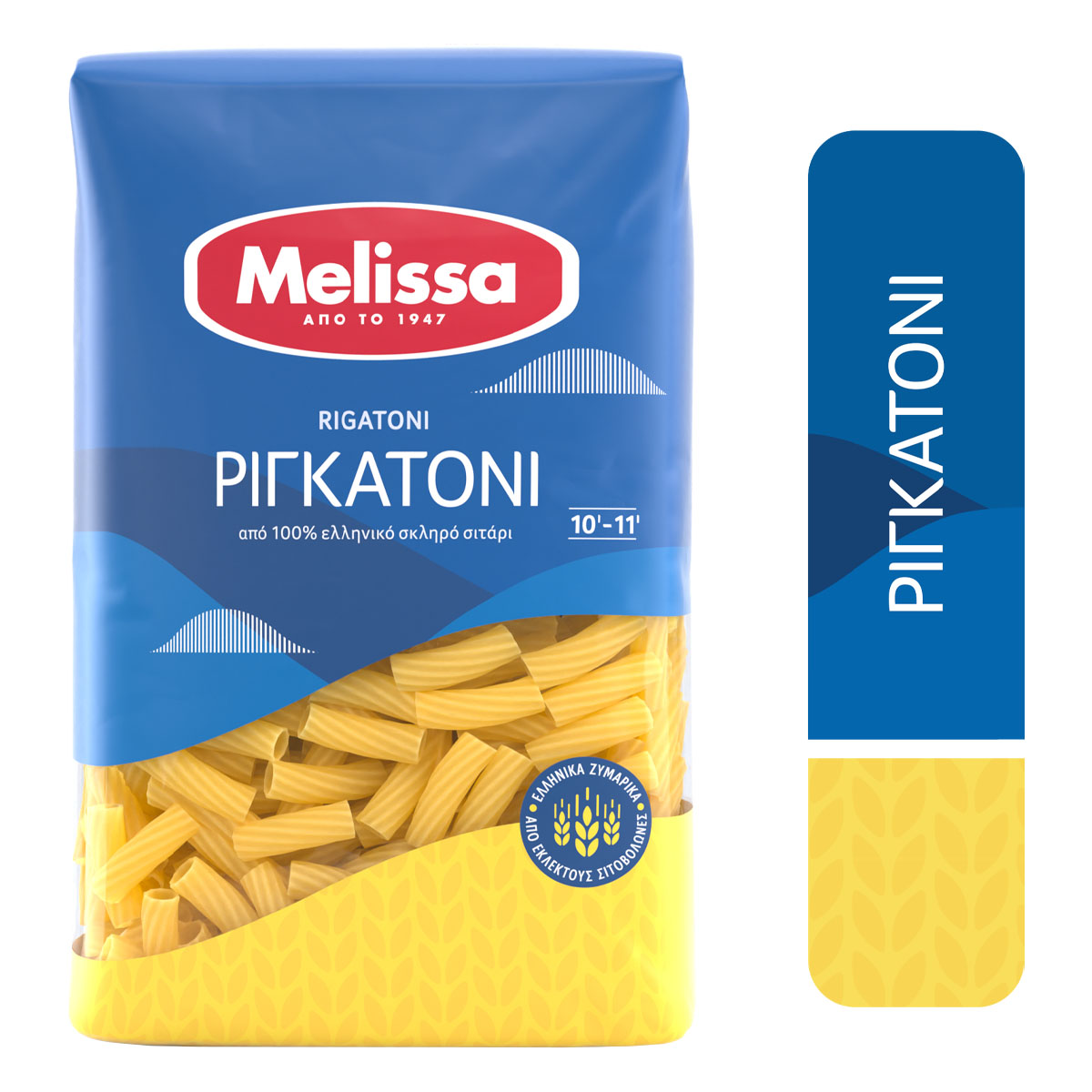 Το Ριγκατόνι Melissa παράγεται από εκλεκτά ελληνικά σιτάρια αποκτώντας χρυσαφένιο χρώμα και αυθεντική γεύση.