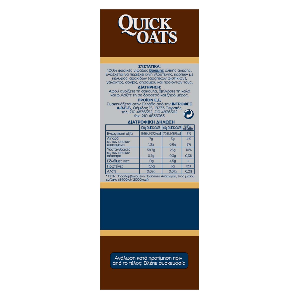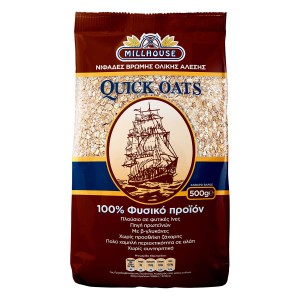 Το προϊόν Quick Oats MILLHOUSE 500gr είναι νιφάδες βρώμης ολικής άλεσης και είναι ένα 100% φυσικό προϊόν με πολλά οφέλη για την υγεία των ανθρώπων. Αποτελεί αναπόσπαστο κομμάτι μια υγιεινής διατροφής για όλες τις ηλικίες.