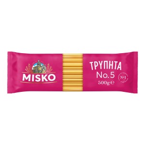 Τα μακαρόνια MISKO Νο5 έχουν λίγο µικρότερη διάµετρο από τα Νo3 και ταιριάζουν καλύτερα σε πιάτα µε σάλτσες. Δοκιμάστε μακαρονόπιτες και σαλάτες με τα ζυμαρικά MISKO No5.