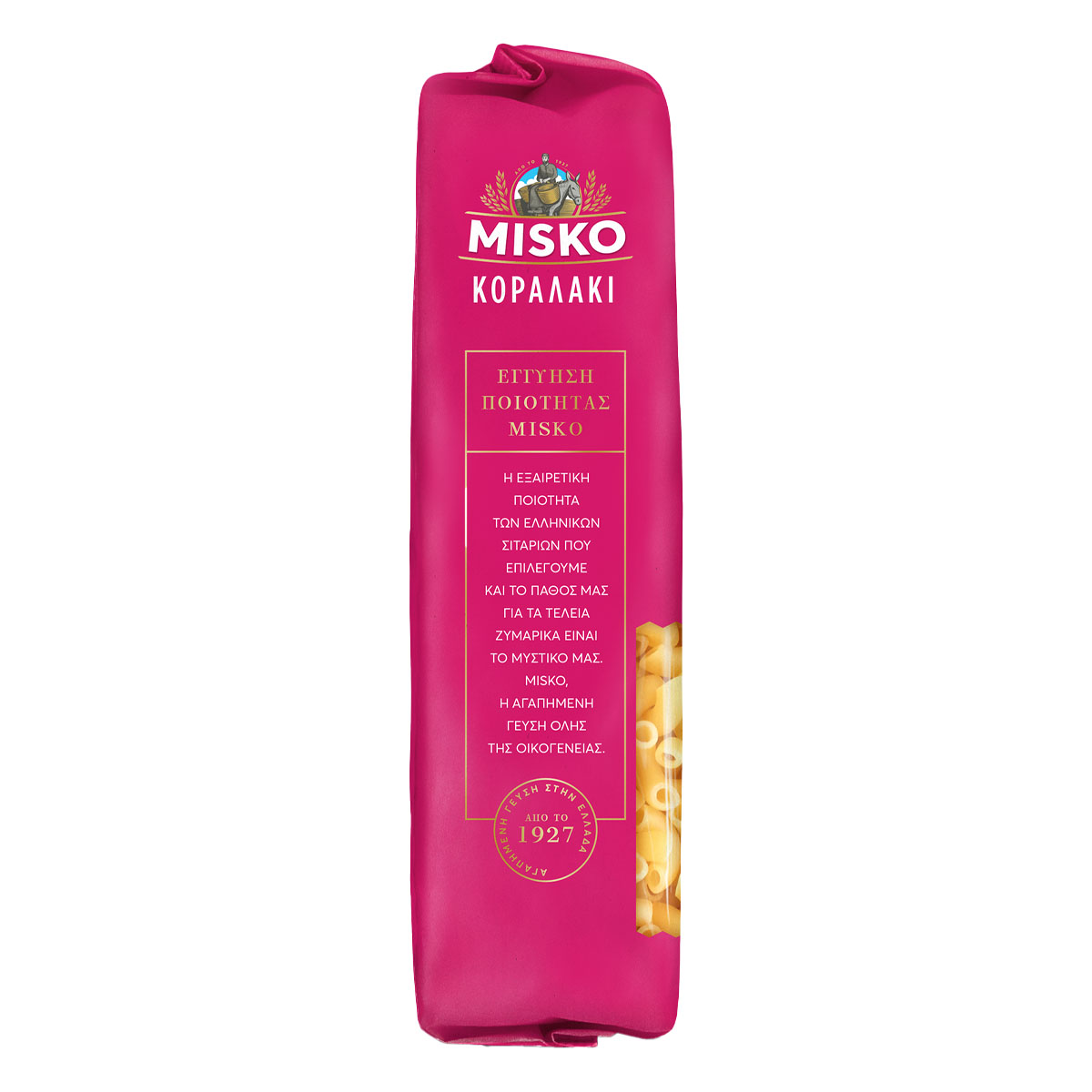 Τα μακαρόνια MISKO κοραλάκι έχουν καµπυλωτό σχήµα και είναι εξίσου αγαπητά στις καρδιές όλων όσων το έχουν δοκιµάσει! Έχουν τρύπα µε µικρή διάµετρο στο εσωτερικό του. Ταιριάζουν ιδαίτερα σε πιάτα µε σάλτσα αλλά ακόµη και σε σούπες. Ανακαλύψτε την κοραλένια αίσθηση στο στόµα συνοδεύοντάς τα ζυμαρικά MISKO κοραλάκι µε κρεατικά, κιµά, λαχανικά ή όποια άλλη συνταγή προτιµάτε!