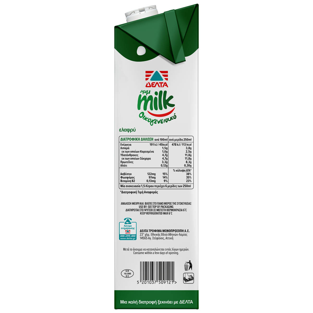 | Λιπαρά (ανά 100ml) | 1.5 g |
