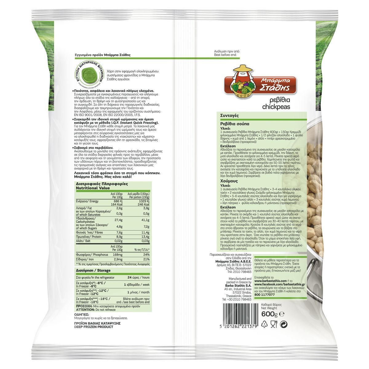 Τα υγιεινά και θρεπτικά ρεβίθια Μπάρμπα Στάθης έρχονται κατευθείαν από την εύφορη ελληνική γη. Έχουν υψηλή περιεκτικότητα σε εδώδιμες ίνες και πρωτεΐνες που συμβάλλουν στη φυσιολογική κατάσταση των οστών, ενώ αποτελούν και πηγή σιδήρου και φωσφόρου, που συμβάλλει στη φυσιολογική κατάσταση των δοντιών.