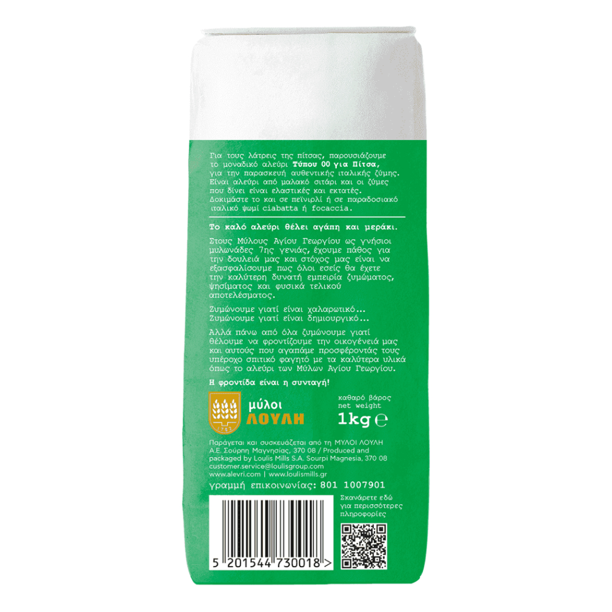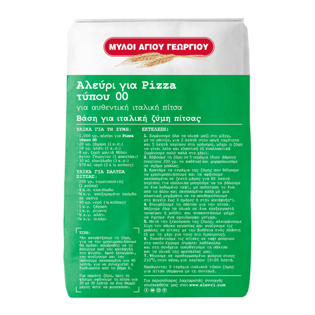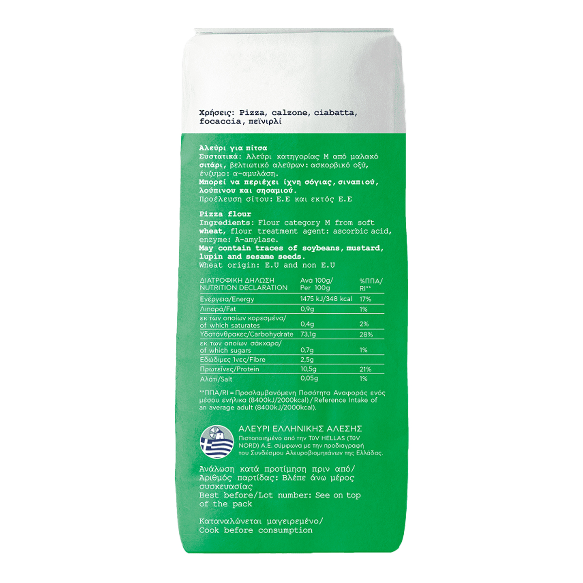 Για τους λάτρεις της πίτσας, παρουσιάζουμε το μοναδικό αλεύρι για Πίτσα Τύπου 00, για την παρασκευή αυθεντικής ιταλικής ζύμης. Είναι αλεύρι από μαλακό σιτάρι και οι ζύμες που δίνει είναι ελαστικές και εκτατές. Δοκιμάστε το και σε πεϊνιρλί ή σε παραδοσιακό ιταλικό ψωμί ciabatta. - Πρωτεΐνη: 10.5%