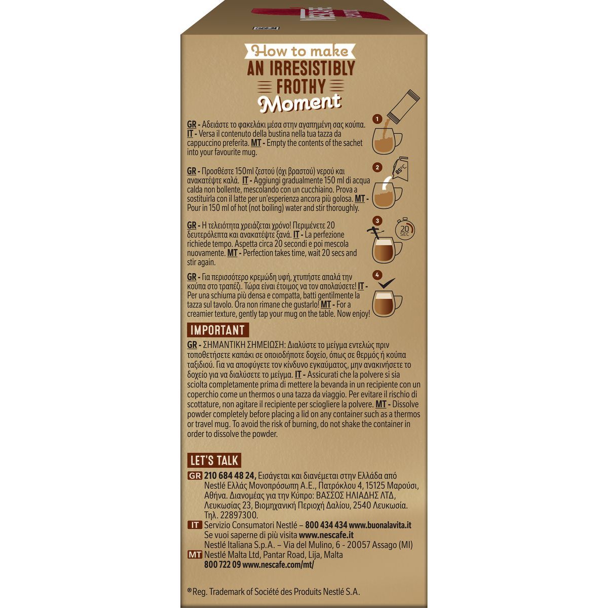 Ανακαλύψτε τον NESCAFE® GOLD Cappuccino! Ένα αρμονικά καβουρδισμένο χαρμάνι καφέδων Arabica και Robusta με λεπτοαλεσμένους κόκους καφέ, μέστο σώμα, βελούδινη κρέμα, και απολαυστική γεύση. Ένας καραμελένιος πειρασμός στο φλιτζάνι σου με πλούσια κρέμα και μοναδικό άρωμα σε έναν καφέ που απογειώνει τις αισθήσεις.Θέλεις κάτι απαλό και μοναδικά απολαυστικό, με αισθησιακή γεύση και πλούσιο άρωμα; Η λύση είναι μία, NESCAFE® GOLD CAPPUCCINO… Μία πρωτόγνωρη γευστική εμπειρία ξετυλίγεται μπροστά σου, τόσο απλά!