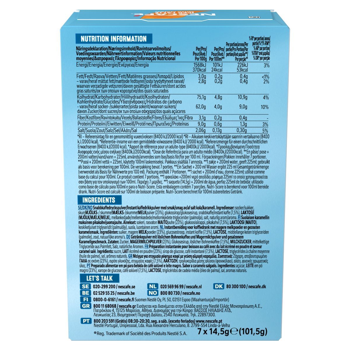 Ο δροσιστικός καφές Nescafe GOLD Iced Salted Caramel είναι φτιαγμένος για να τον απολαμβάνετε παγωμένο! Χρησιμοποιούμε προσεκτικά επιλεγμένα συστατικά για έναν απολαυστικό καφέ με γευστικό αφρόγαλα.Η συσκευασία περιέχει 7 φακελάκια.