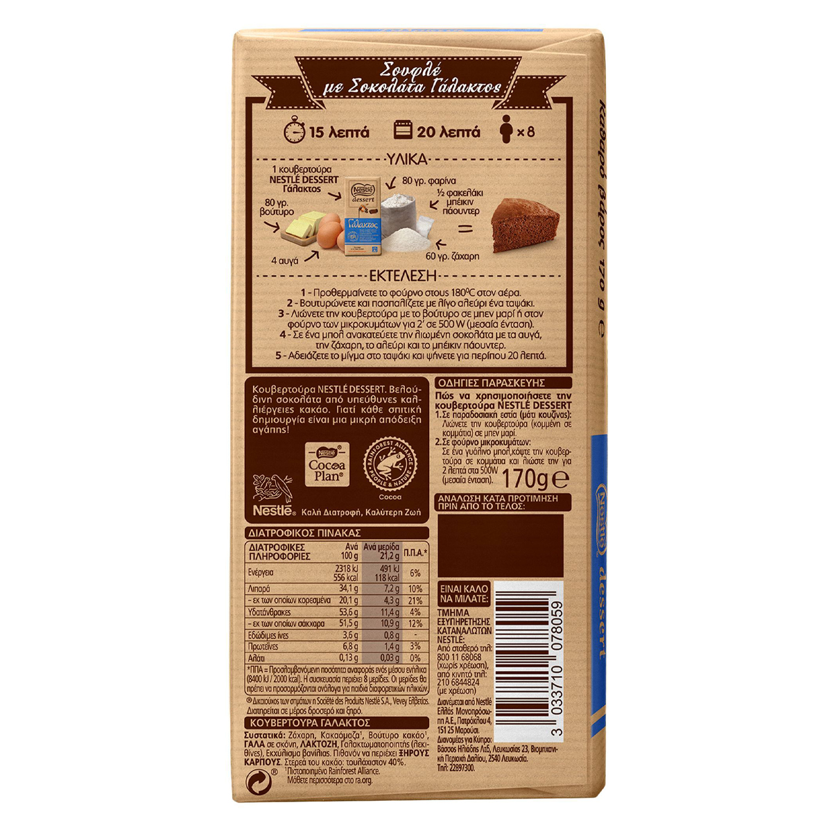 Nestle Dessert Κουβερτούρα Γάλακτος Χωρίς Γλουτένη 170 gr