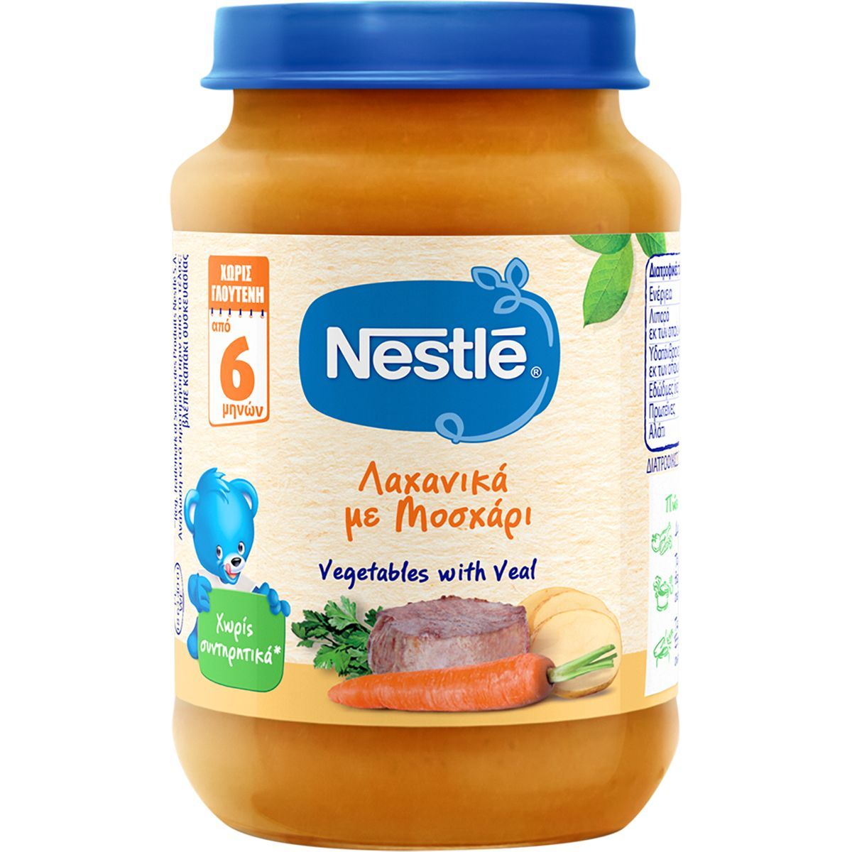 Παιδική τροφή. Λαχανικά με Μοσχάρι. Ολοκληρωμένα βρεφικά γεύματα με κρέας και λαχανικά μαγειρεμένα στον ατμό, υψηλής διατροφικής αξίας, χωρίς πρόσθετο αλάτι και με υπέροχη γεύση. Έτοιμα για κατανάλωση στο σπίτι, στη βόλτα, στο ταξίδι! Τα βρεφικά γεύματα της Nestle με κρέας και λαχανικά σε γυάλινα βαζάκια παρασκευάζονται από εκλεκτά συστατικά προσφέροντας ένα εξαιρετικά εύγεστο γεύμα στο μωρό σας! Θα τα βρείτε σε 3 απολαυστικές συνταγές, χωρίς πρόσθετο αλάτι*. Μαγειρεύονται στον ατμό σε συγκεκριμένη θερμοκρασία για να παραμείνουν όλα τα θρεπτικά συστατικά αναλλοίωτα. Έπειτα συσκευάζονται σε γυάλινα βαζάκια και σε κενό αέρος, ώστε να διατηρούνται άριστα χωρίς συντηρητικά**. *Περιέχουν μόνο φυσικώς απαντώμενο νάτριο. **Όπως απαιτείται από την τρέχουσα νομοθεσία.