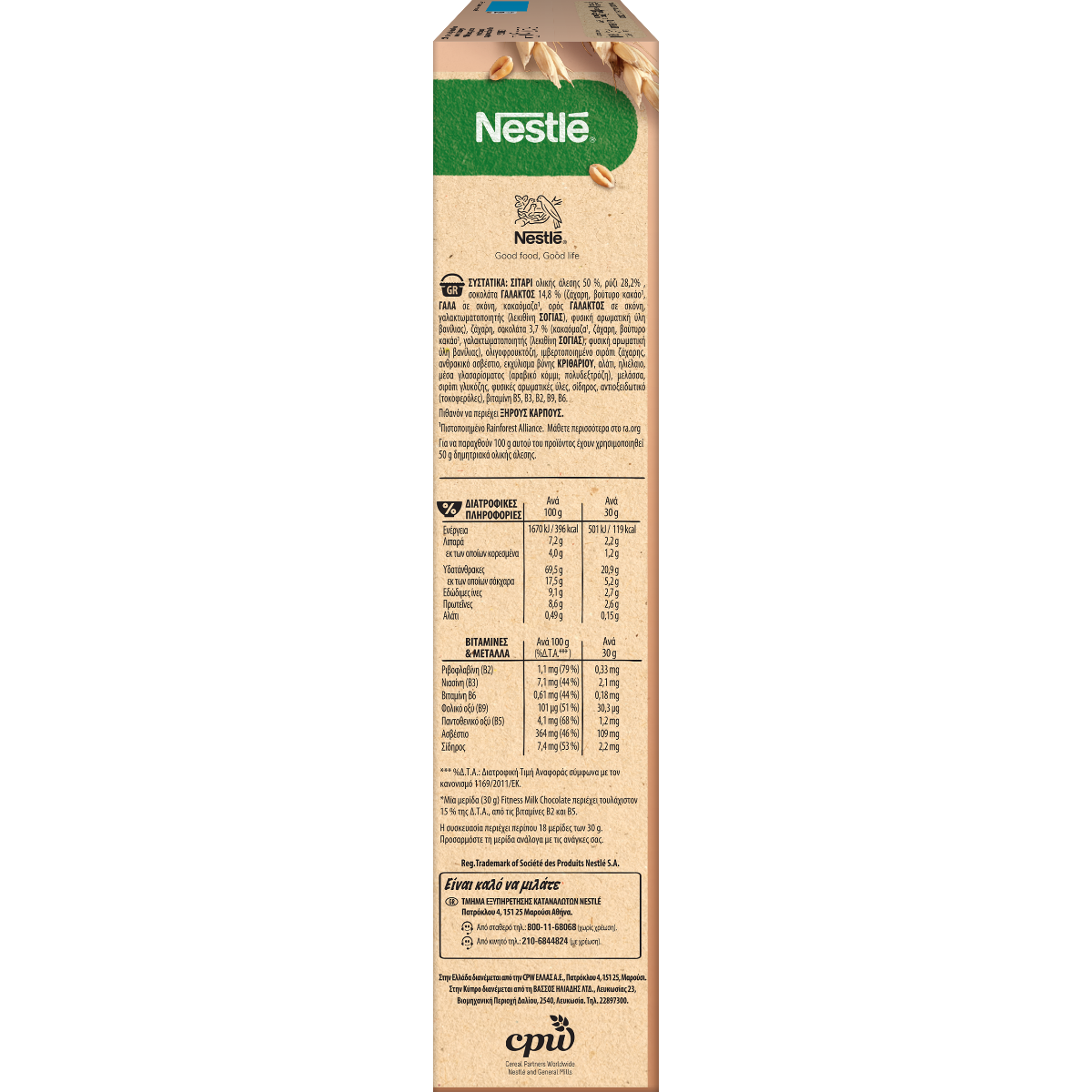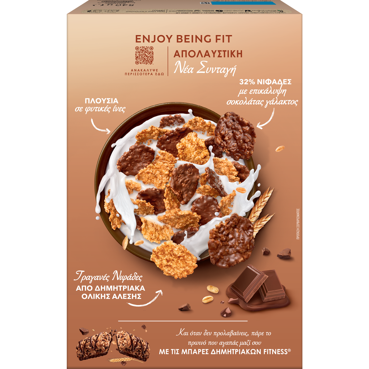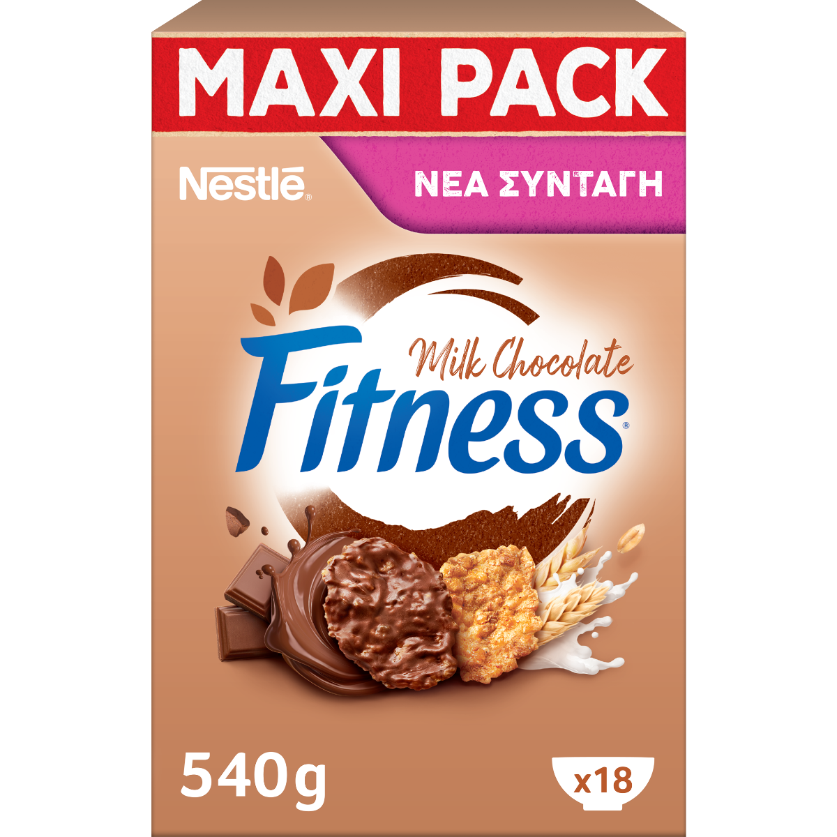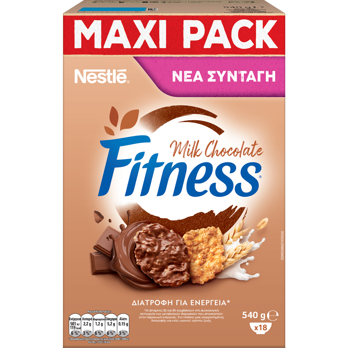 Δημητριακά έτοιμα προς κατανάλωση με 5 βιταμίνες, ασβέστιο και σίδηρο, FITNESS® CHOCOLATE 540g. Ξεκίνα τη μέρα σου με ενέργεια παρέα με τα αγαπημένα σου δημητριακά πρωινού ολικής άλεσης Fitness® της Nestle. Απόλαυσε τη λαχταριστή σοκολάτα γάλακτος στα Fitness® Chocolate! Φτιαγμένα με σιτάρι και βρωμη ολικής άλεσης και πλούσια σε βιταμίνες του συμπλέγματος Β σου δίνουν την ενέργεια που χρειάζεσαι για να κάνεις όλα αυτά που αγαπάς στο Full.