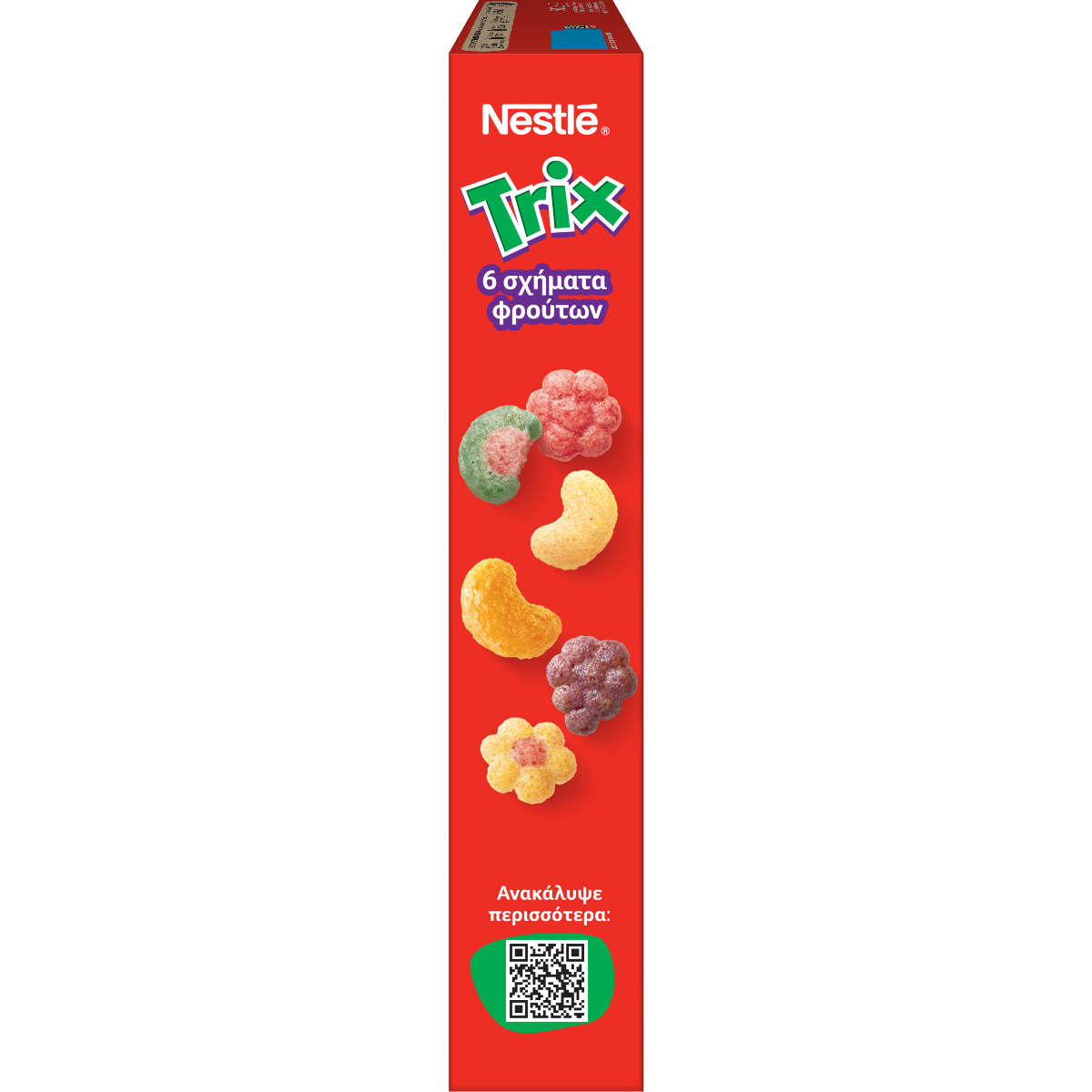 Τα παιδιά και οι έφηβοι χρειάζονται ένα θρεπτικό και γευστικό πρωινό για να ξεκινήσουν την ημέρα τους με ενέργεια και να ανταπεξέλθουν στο απαιτητικό τους πρόγραμμα! Κάθε φρουτο-λαχταριστή κουταλιά από τις τραγανές νιφάδες δημητριακών πρωινού ολικής άλεσης TRIX® 300g με τον συνδυασμό νιφάδων σε σχήμα βατόμουρο, πορτοκάλι, λεμόνι, μούρο, σταφύλι και καρπούζι! Περιέχει βιταμίνες συμπλέγματος Β, Ασβέστιο, Σίδηρο και όλα τα οφέλη της ολικής άλεσης! Δημητριακά Πρωινού Ολικής Αλέσεως TRIX® 300g με φρουτένια γεύση.